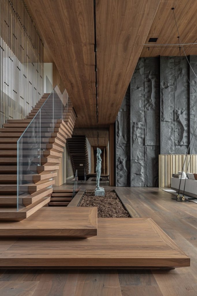 This staircase feels like a piece of art. Its smooth concrete curves rise gracefully and make any room shine. The clean lines and glass rail bring a bright, open look. It feels bold yet warm—perfect for a cozy fall refresh. Add soft lights to highlight each curve and texture. Do you love this design? Save it for later and share your dream staircase ideas below.