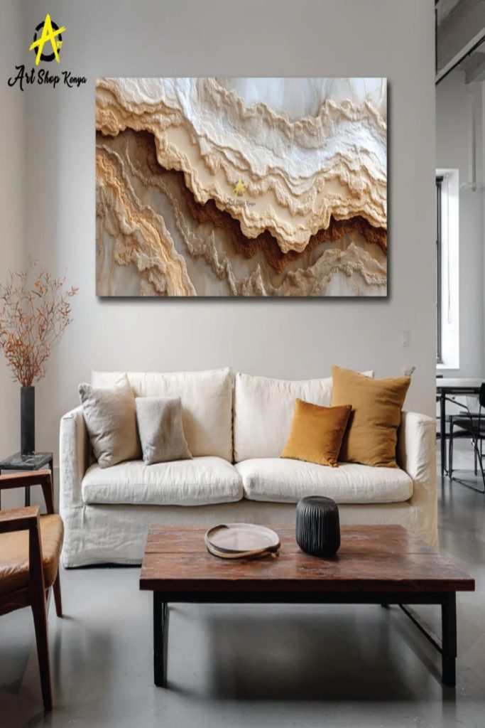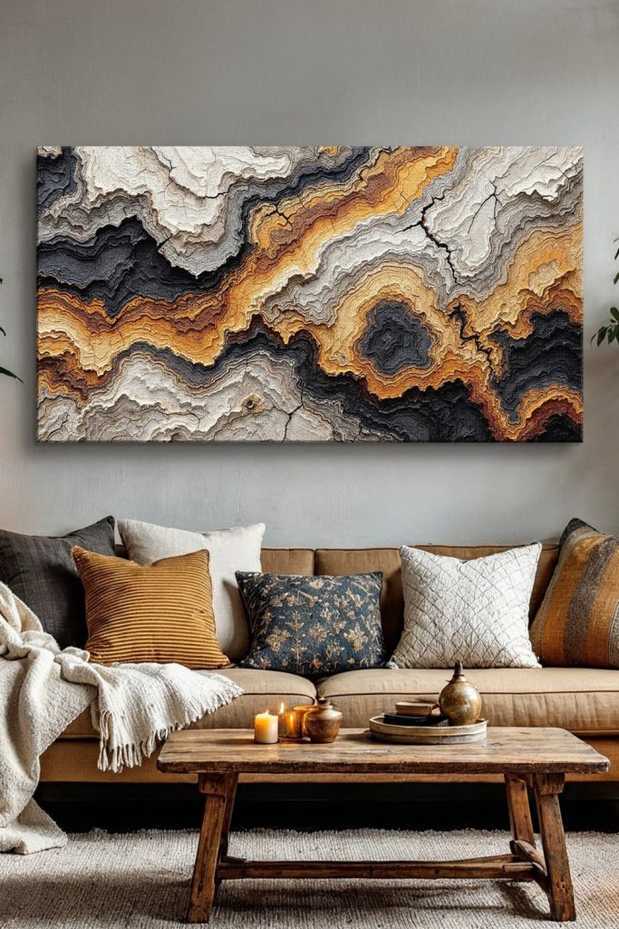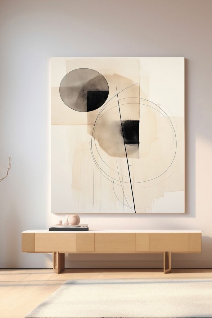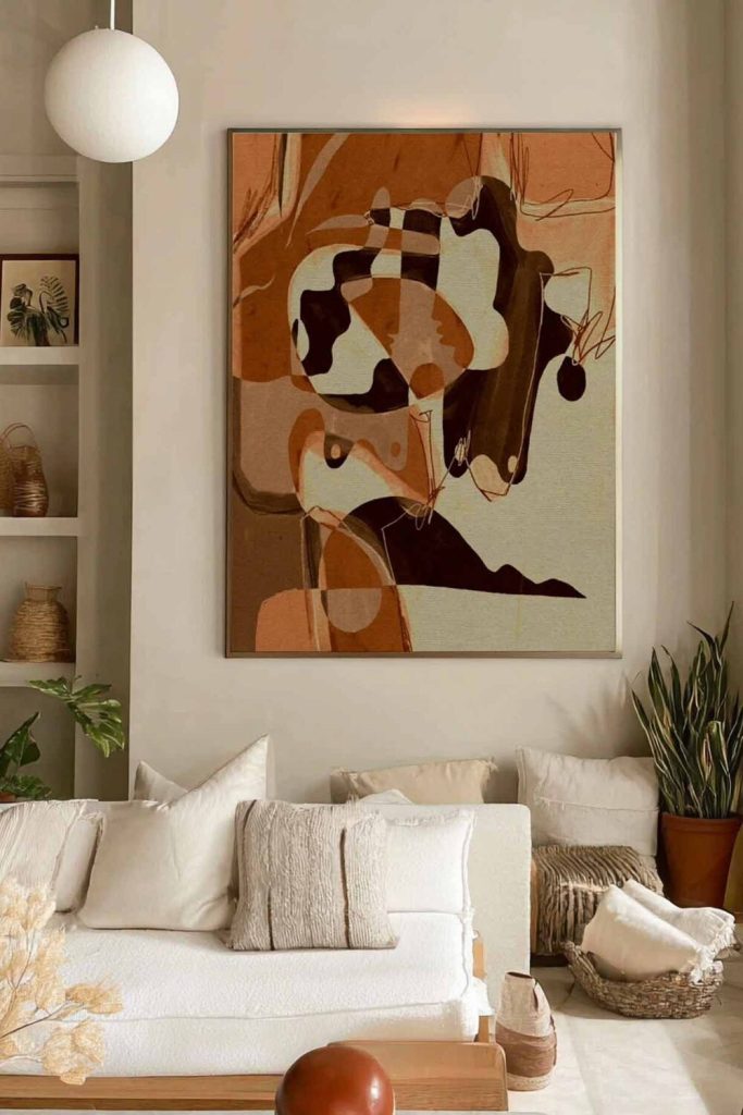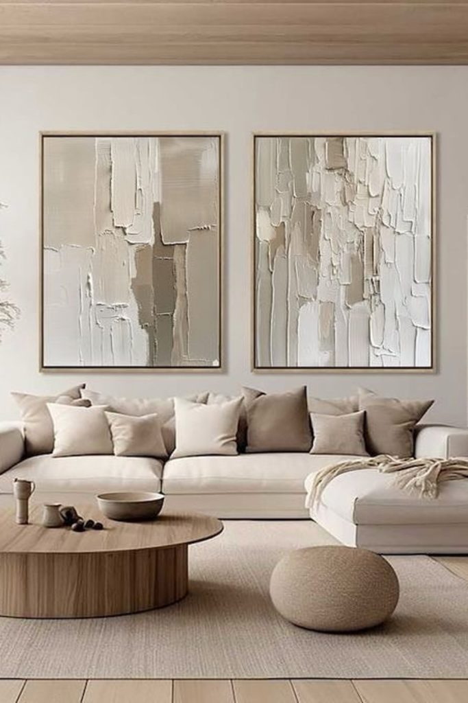 1. Oversized Neutral Abstract Canvas in Cozy Minimalist Living Room