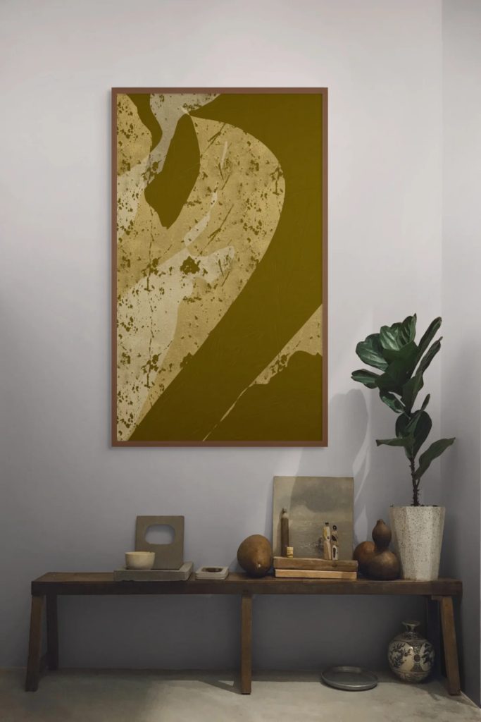 16. Olive Green & Ochre Abstract in Organic Modern Kitchen