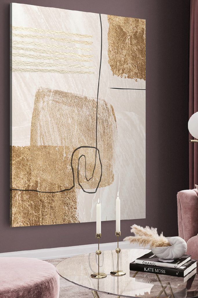 11. Golden Hour Abstract Canvas in Warm Minimalist Dining Room