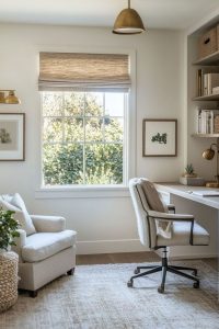 Serene Neutral Nursery with Organic Textures This room is cozy and simple! Soft beige is on the walls. It feels warm. A cotton sheet is on the crib. It feels nice. A woven rug sits on the floor. The crib is old wood. It looks pretty for years. A big soft toy waits. Sun comes in. A simple mobile turns slow. Do you want a calm room? Use green things. Use soft colors. Add a woven basket. It holds toys. It looks good. What baby thing do you love?