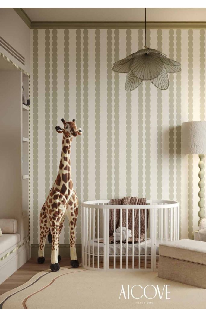 This nursery is a playful delight! A soft gray palette sets a calm tone, with animal-themed wall decals and a plush lion adding fun. The sustainable bamboo crib and woven basket keep it eco-friendly. For a playful baby bedroom, mix neutral bases with whimsical accents. Pro tip: Use removable decals for easy updates as your child grows. This space is adorable and practical! Love animal themes? Save this to your nursery board and share your favorite playful decor idea in the comments!