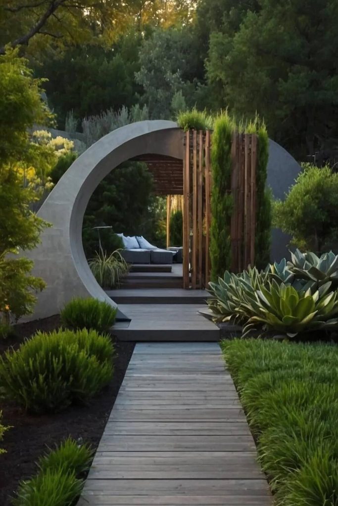 The “Moon Gate” is a round door from old ways. It is back as a top choice for grand yards. It frames the view like art. This is not just a gate. It is a special path. You need help to build one. But it looks great. Put soft grass near it to match the round shape. It is a bold look for those who love their yard.