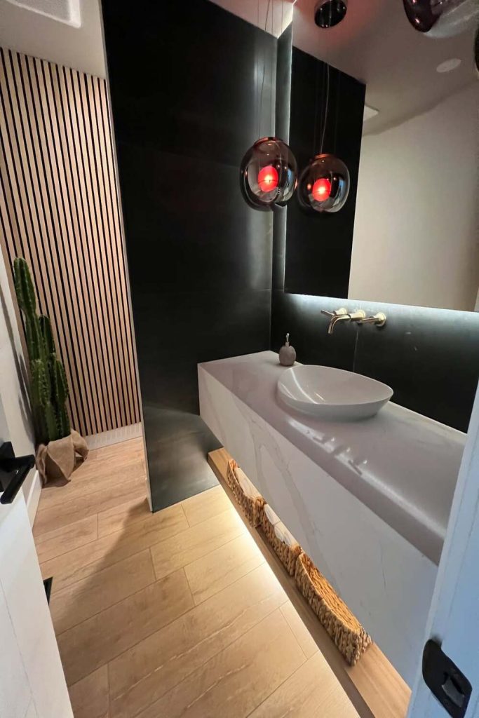 This bathroom is a masterclass in cozy minimalism. The soft white walls and sleek wooden vanity create a calming vibe, perfect for unwinding. A woven basket adds texture, while a single potted plant brings life without clutter. The matte black fixtures scream modern elegance, aligning with 2025’s sustainable design trends. As a decor lover, I’d swap out towels seasonally for a pop of color. This space proves you don’t need much to feel luxe. Want to recreate this look? Start with neutral tones and eco-friendly accents. Share your minimalist tips in the comments!