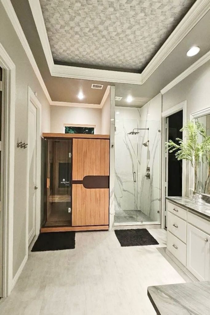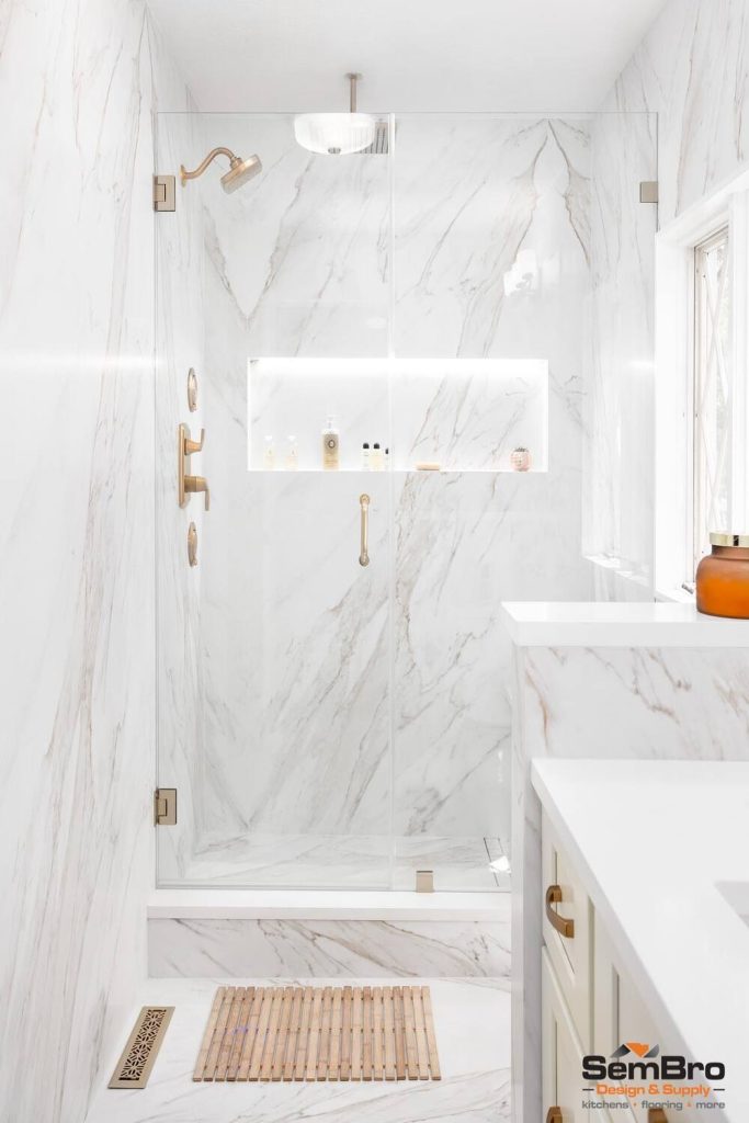 This bathroom remodel oozes sophistication with its marble walls and gold fixtures. The soft gray tones align with 2025’s calming color palettes, creating a spa-like retreat. A minimalist vanity keeps it uncluttered, while a single orchid adds delicate charm. As a decor blogger, I’d suggest a plush towel stack for warmth. This design proves luxury doesn’t need excess. Dreaming of a high-end bathroom refresh? Pin this for inspiration and share how you’d personalize this elegant look. Let’s talk marble versus matte in the comments!