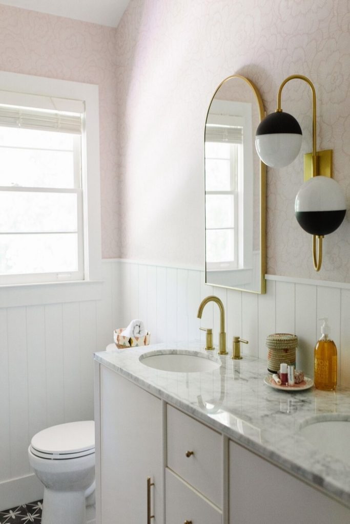 This bathroom remodel is all about drama! The striking black-and-white tile floor steals the show, paired with crisp white walls for balance. A sleek vanity with gold accents adds a touch of luxury, perfect for 2025’s bold yet refined trends. I love how the round mirror softens the sharp lines. As a blogger, I’d suggest adding a vibrant plant to warm it up. This design works for small spaces craving impact. Ready for a bathroom refresh? Pin this for inspiration and tell me how you’d add your personal flair!