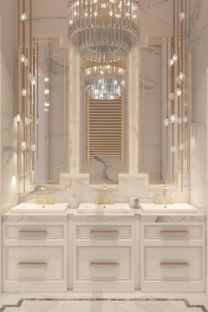 This vanity feels grand and classy. The marble top and gold details look rich and fancy. Big drawers give lots of space, and the large mirror adds drama — perfect for 2025’s luxury look. I’d use glass jars for a clean finish. As a decor fan, I love this calm, spa-like vibe. Want a fancy upgrade? Pin this and share your favorite elegant ideas below!