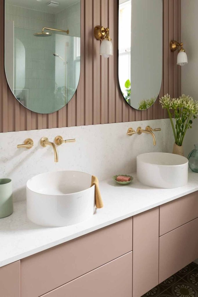 This terracotta vanity is a 2025 favorite! The warm orange tone adds color and comfort. Sleek drawers offer plenty of space, while the simple mirror keeps it modern. I’d pair it with soft towels for balance. As a fan of bold style, I love how it feels bright and cozy. Want to try color in your bathroom? Pin this and share how you’d use terracotta at home!