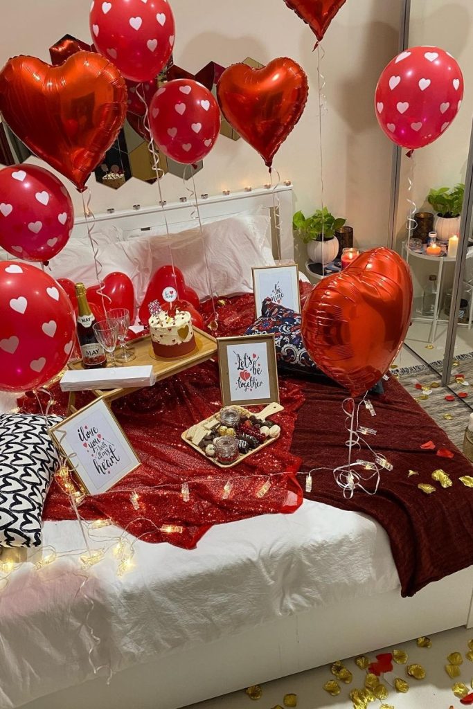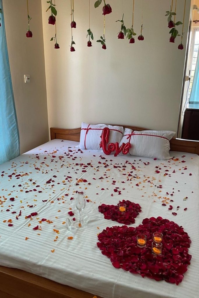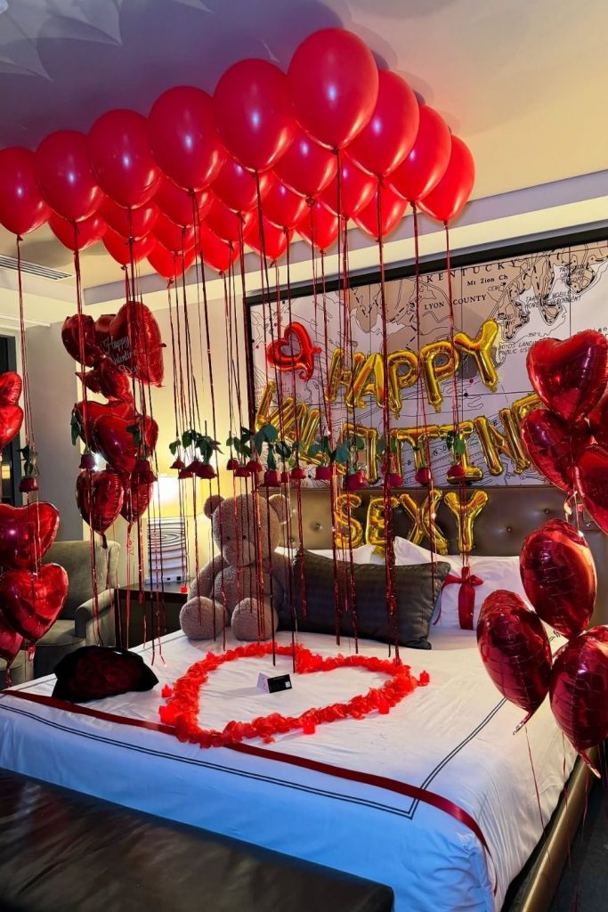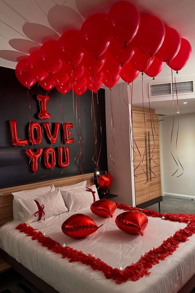 A crimson throw ignited our neutral rut—bold but brief. Here, red pillows spike white bedding on iron frame, candle clusters for flicker. Leather armchair adds edge, shared for chats. Intimate lighting ideas for couples amplify this. Passion in pops—try it?