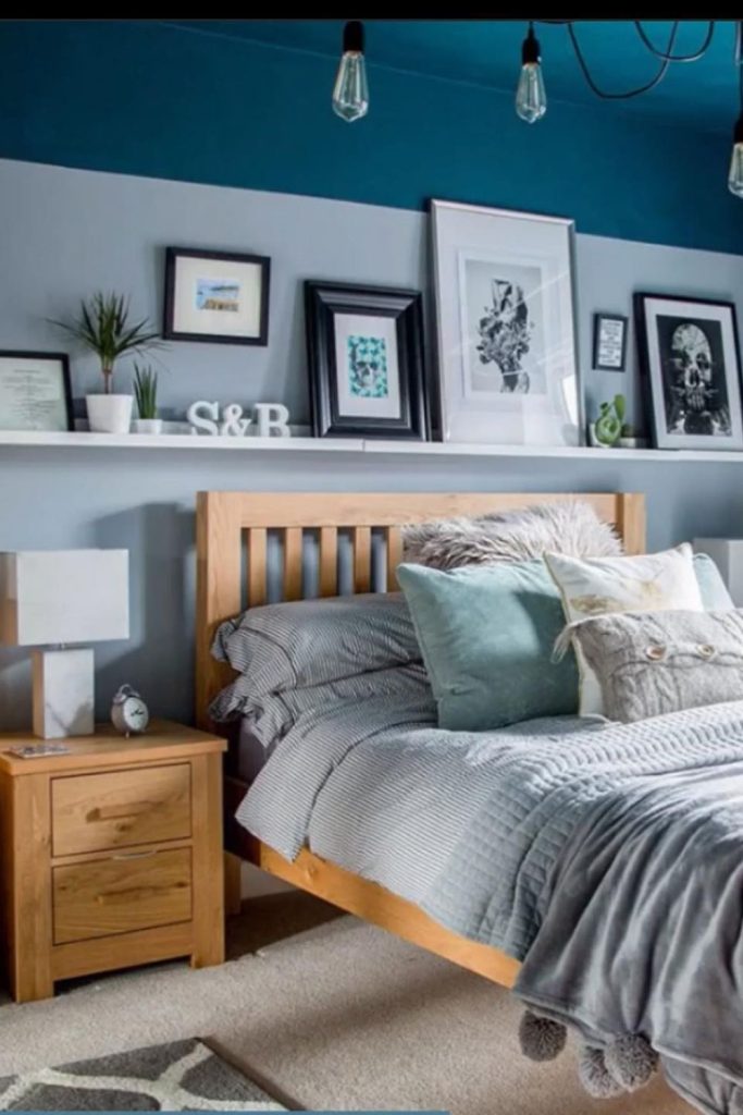 This soft blue bedroom feels elegant and calm! The light blue walls and bedding make the room peaceful. The wooden bed adds warmth, and a soft throw makes it cozy. I love how simple and pretty it looks. To get this look, use light blues with linen or wood decor. It’s great for a calm, restful space. Want this soft style? Try it and share your bedroom ideas in the comments or on Pinterest!
