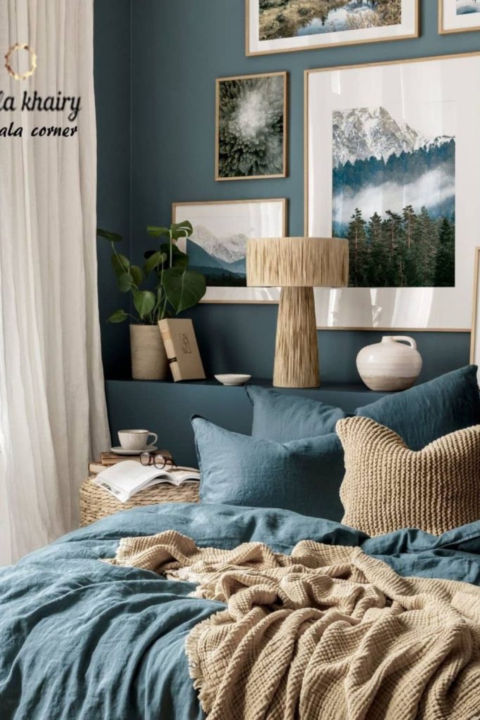 This cozy blue bedroom feels warm and snug! The blue bed and woven blanket make it soft and comfy. The wooden headboard adds a natural, homely touch. A navy pillow brings color and depth. I love how the layers make it feel cozy and calm. To try this look, mix blue fabrics with wood or cotton. It’s perfect for a quiet and restful room. Like this idea? Try it and share your bedroom tips in the comments or on Pinterest!