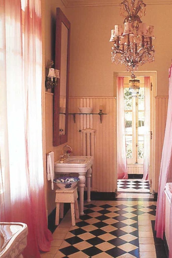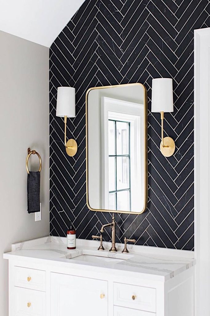 Don’t be afraid of black paint! This bathroom features a stunning black accent wall that makes the white porcelain sink practically glow. It creates a beautiful sense of drama. People often worry that black will make a room feel small, but as you can see here, it actually makes the walls “recede,” creating an illusion of more space. Combined with a large mirror to bounce light around, it’s a total win. It feels moody, intimate, and very high-fashion.