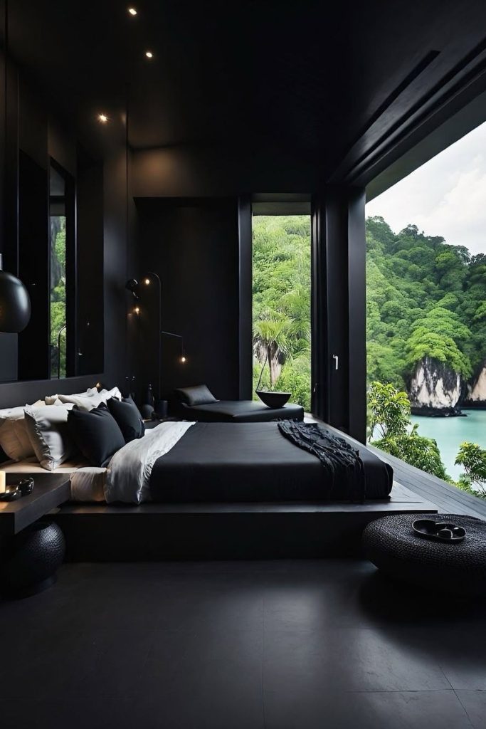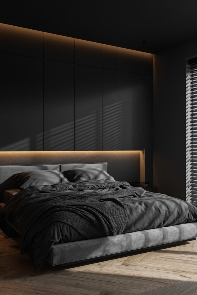 8. Black Bedroom with Scandi-Inspired Simplicity