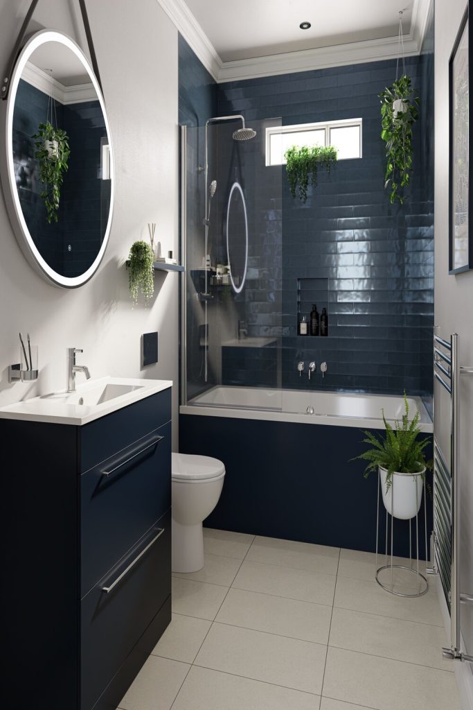 This navy shiplap brings me back to my beach house. This was last summer. It feels calm. The deep blue walls fit white subway tiles. They fit brass bits. This gives old coastal blue bath feel. I added green wood bits in my guest bath. They fight wet air good. Add woven baskets. Add a jute rug. This gives cozy plain style. It fits small spots. It makes them feel big. It makes them feel bright. Pro tip: Seal the shiplap with sea grade stuff. This lasts long. If you want blue bath refresh, start here. It changes much. No need for full fix.