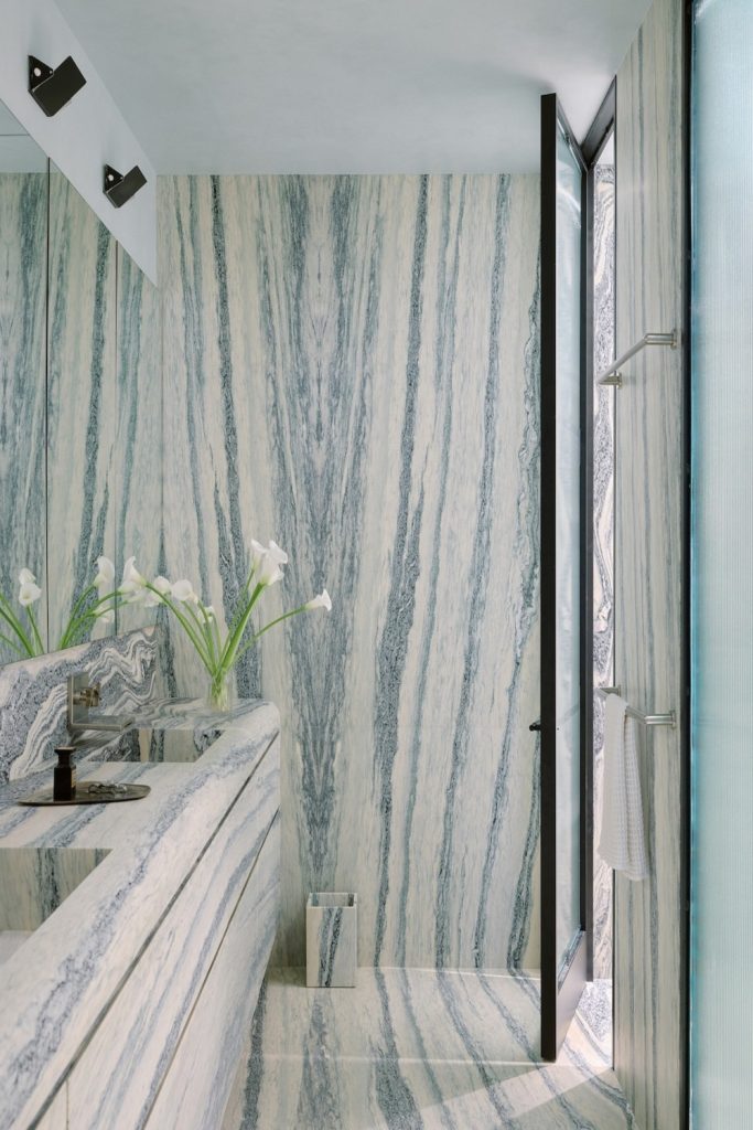 Blue marble counters lift fast. Like the slab I got for a client luxury blue spa. Veins add real art. Seal each year for stain fight. Go with vessel sinks for tall. Green note: Look for left bits. Cut waste. This blue marble counter idea fits moody trends nice. In use, it is cool to touch. Refresh.