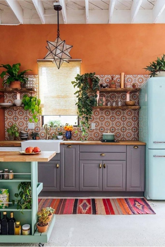 This kitchen is a boho lover’s delight! Mismatched tiles and wooden cabinets create an eclectic vibe, while woven baskets add texture. A vibrant rug and colorful ceramics bring playful energy, perfect for a space that sparks creativity. The warm, earthy palette ties it all together, making it feel so inviting. To recreate this, mix patterns and sustainable materials for a curated look. I love how this kitchen feels so full of personality! What’s a unique decor piece you’d add to your space? Share your ideas below and let’s inspire each other!