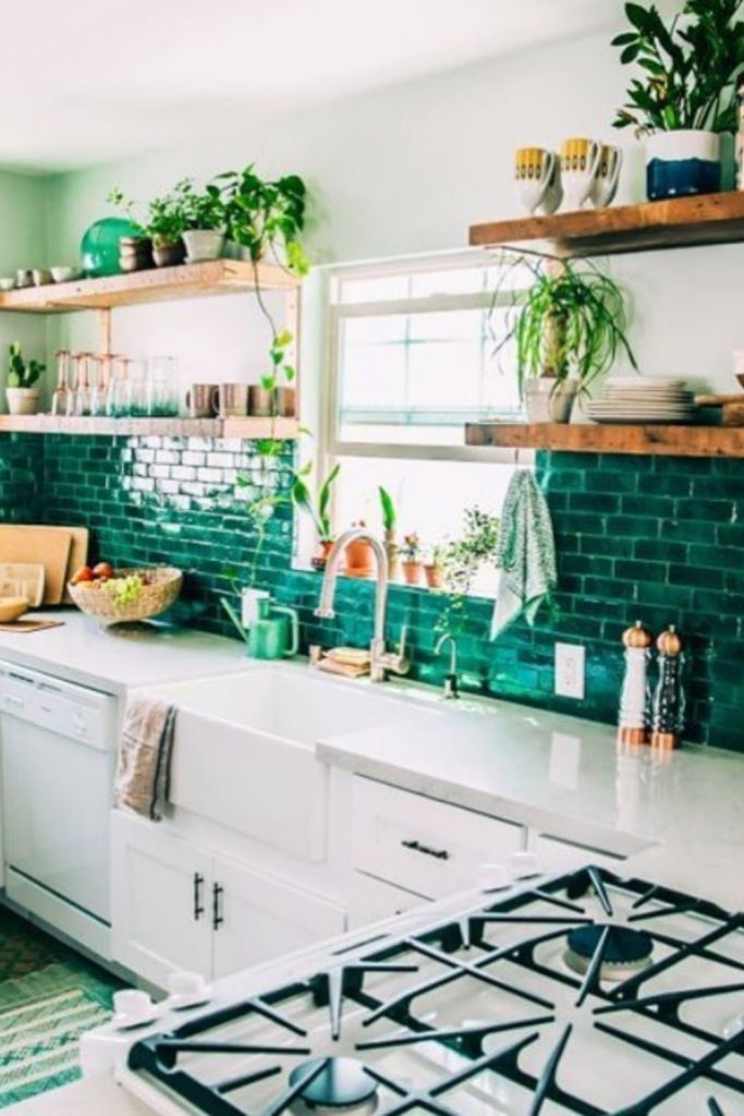 This rustic boho kitchen feels like a countryside retreat. Weathered wooden shelves and a jute runner add earthy charm, while soft white walls keep it airy. A cluster of potted herbs brings function and greenery, tying into the sustainable trend. The warm, neutral palette creates a serene vibe, perfect for slow mornings. To recreate this, mix reclaimed wood with natural textiles. I love how this kitchen feels so grounded! What’s your favorite way to add rustic charm to your space? Share your ideas in the comments and let’s spark some inspiration!