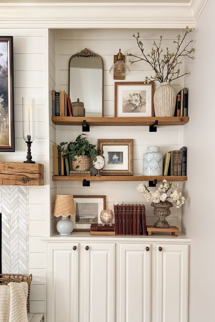 9. Rustic Farmhouse Shelves That Feel Collected Over Decades