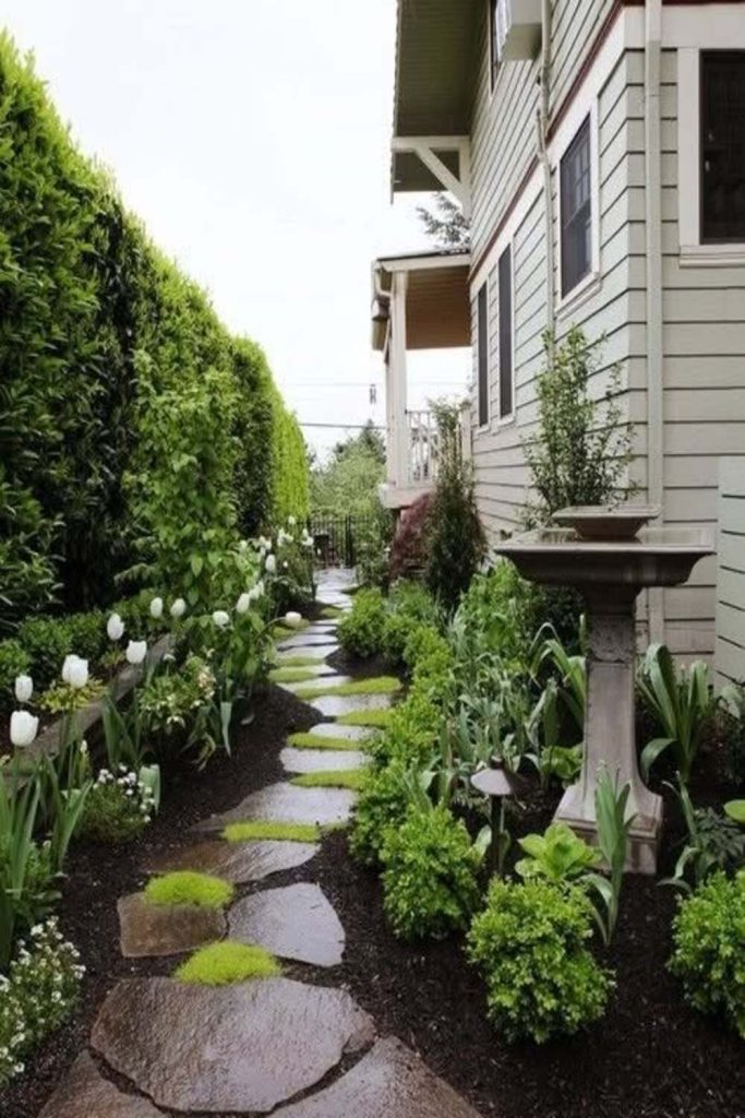 Can we talk about the spell of a path that winds? This has a “small home” feel. Many love it now. Do not just use a straight path. Use stones in the grass. Use stones in the dirt. It makes a path. It feels sweet and planned. I tell my friends to let plants grow over the edge. It makes the yard feel old and real. It is an easy way to add charm to a plain home.