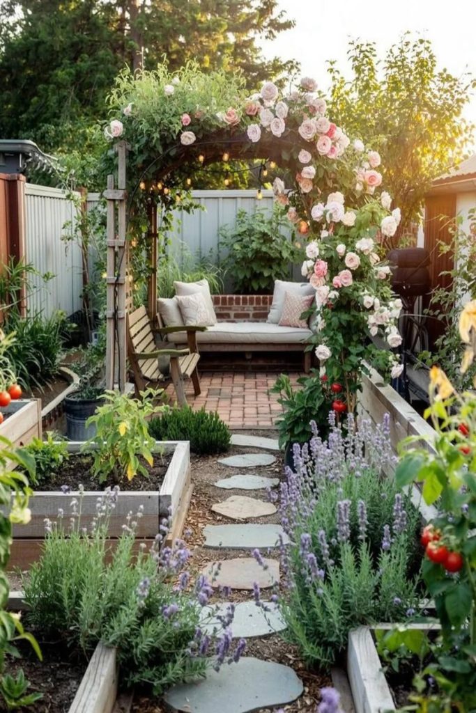 Don’t let a tiny yard stop you! This proves that even a few square feet can be packed with style. By using tiered planters and a vertical trellis, you can maximize your growing space and add visual interest at eye level. I’ve used this technique in urban townhomes, and it completely transforms a concrete entryway into a lush oasis. Use aromatic plants like lavender or rosemary near the door so you get a “scented welcome” every time you come home.