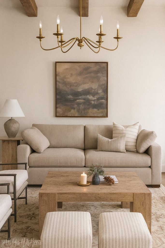 10. Timeless Tan Couch Living Room with Classic Neutrals