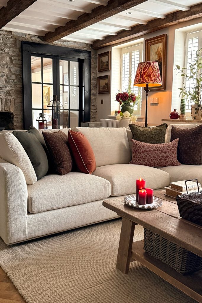 3. Rustic Fall Living Room Decor Around a Plush Brown Couch