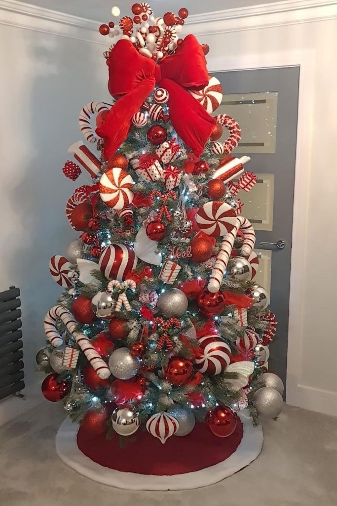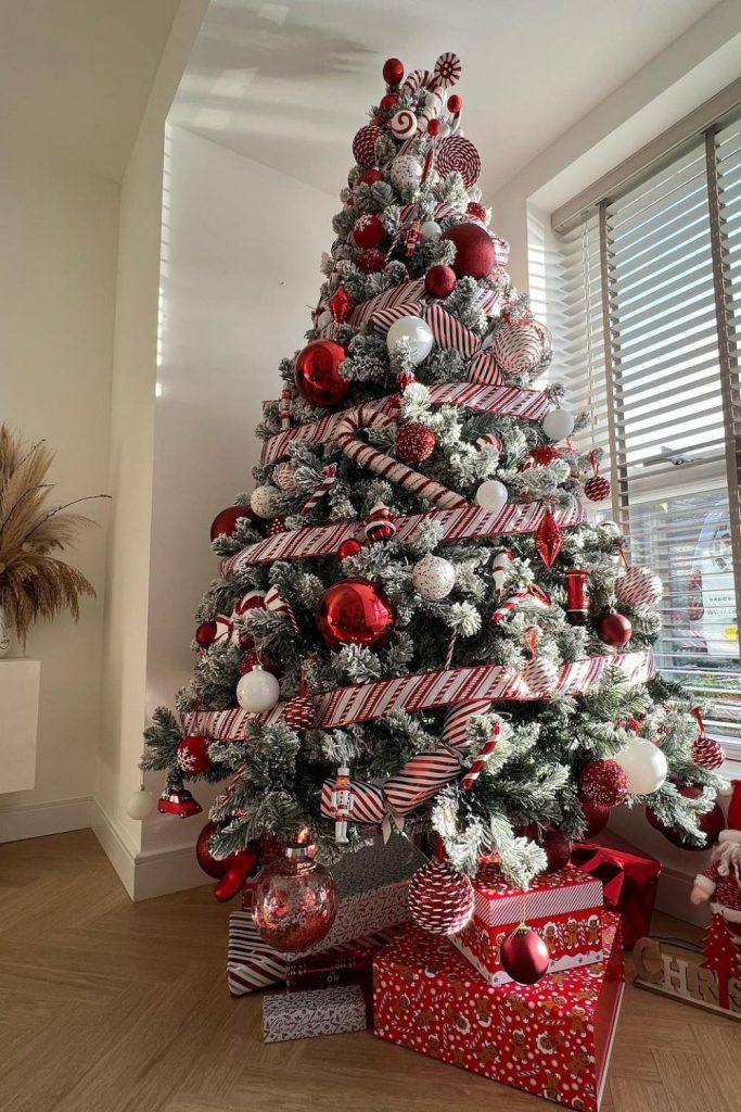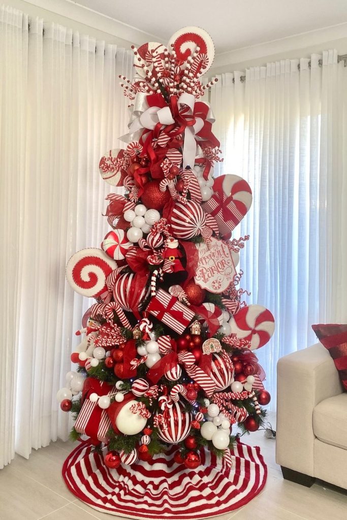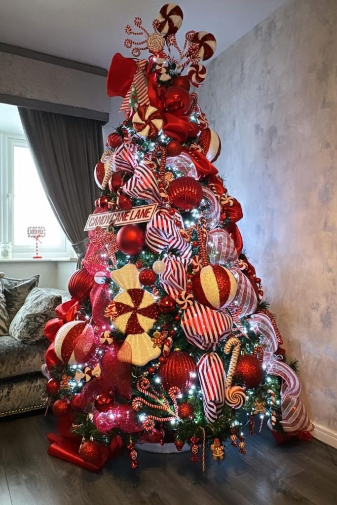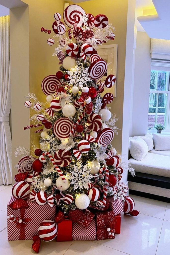 Wow, this candy cane Christmas tree is a showstopper! Oversized peppermint ornaments and swirling red ribbons dominate the lush branches, creating a playful yet bold focal point. The vibrant red-and-white palette screams holiday cheer while keeping things chic with metallic accents. I love how the tree anchors the room without overwhelming it. Pro tip: use LED lights to enhance the candy cane glow sustainably. This look inspires me to go big this season! Try it for a festive refresh and share your bold decor ideas below—let’s swap holiday styling tips!