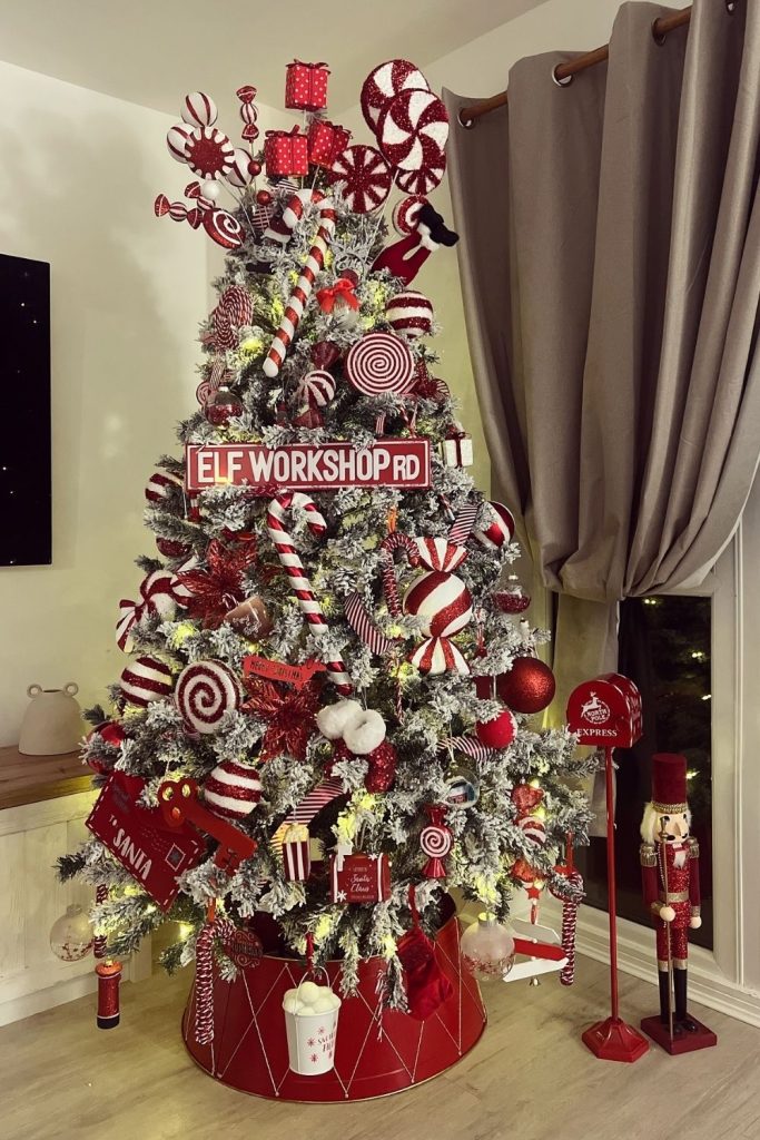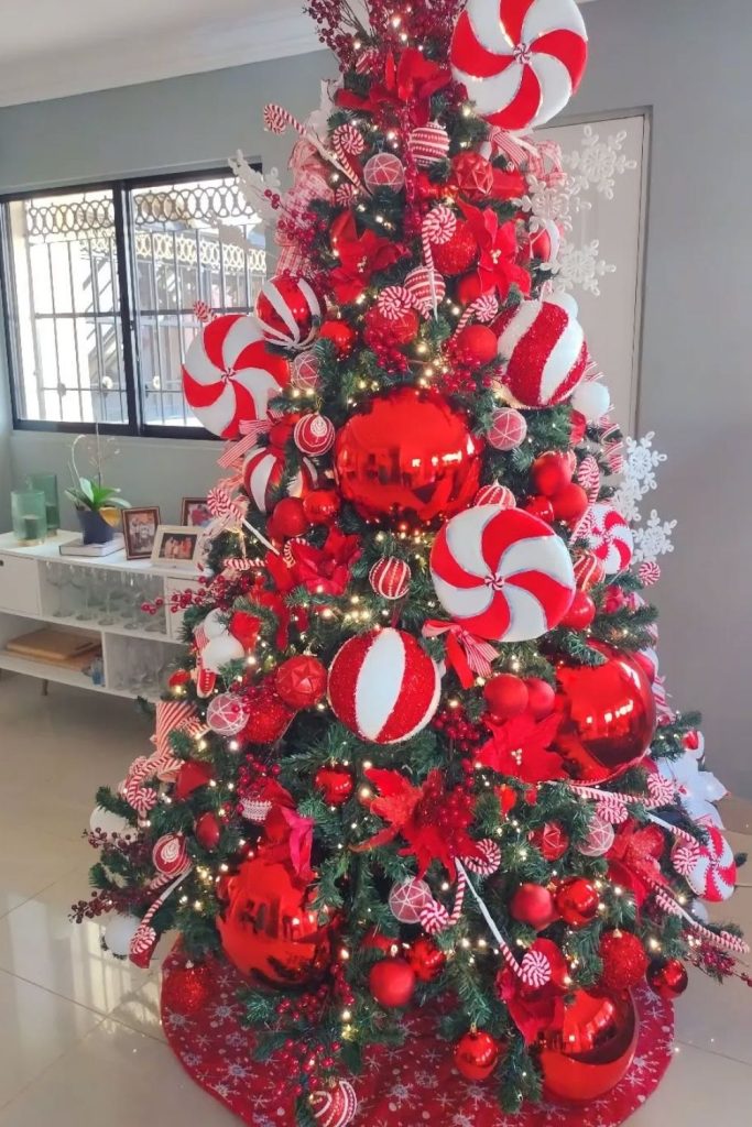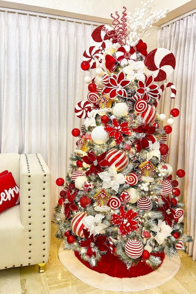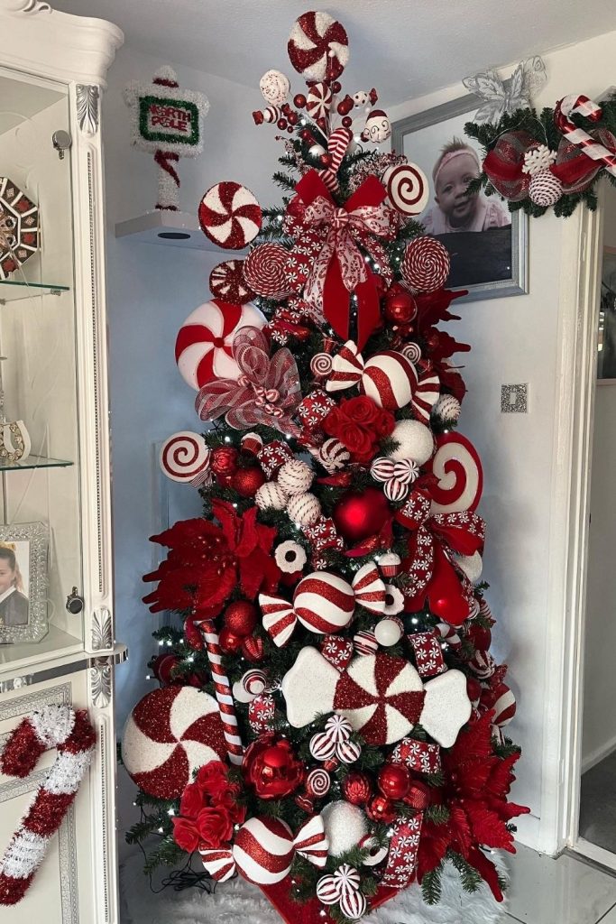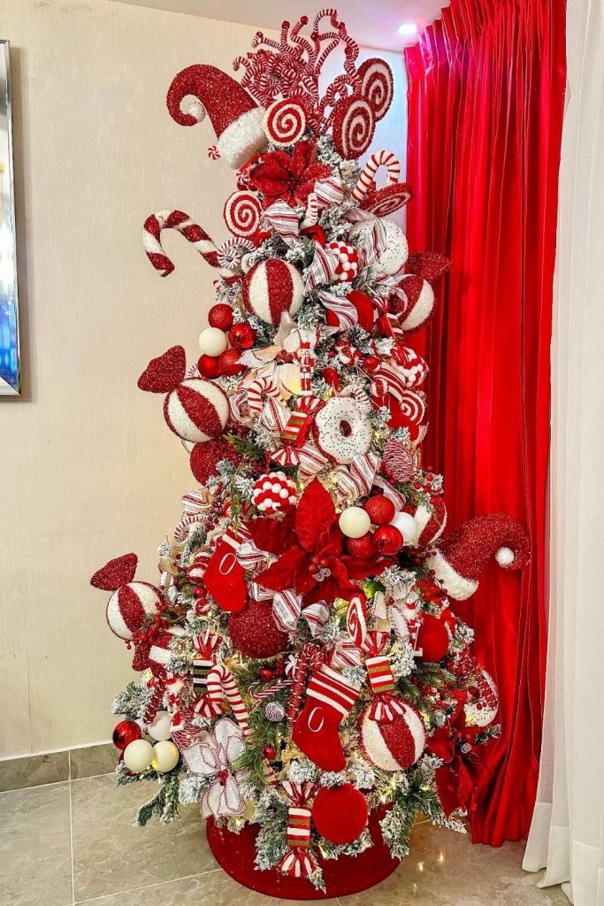 Wow, this candy cane Christmas tree is a showstopper! Oversized peppermint ornaments and swirling red ribbons dominate the lush branches, creating a playful yet bold focal point. The vibrant red-and-white palette screams holiday cheer while keeping things chic with metallic accents. I love how the tree anchors the room without overwhelming it. Pro tip: use LED lights to enhance the candy cane glow sustainably. This look inspires me to go big this season! Try it for a festive refresh and share your bold decor ideas below—let’s swap holiday styling tips!