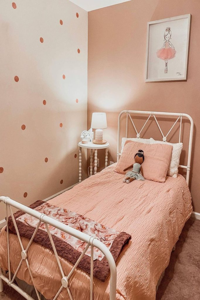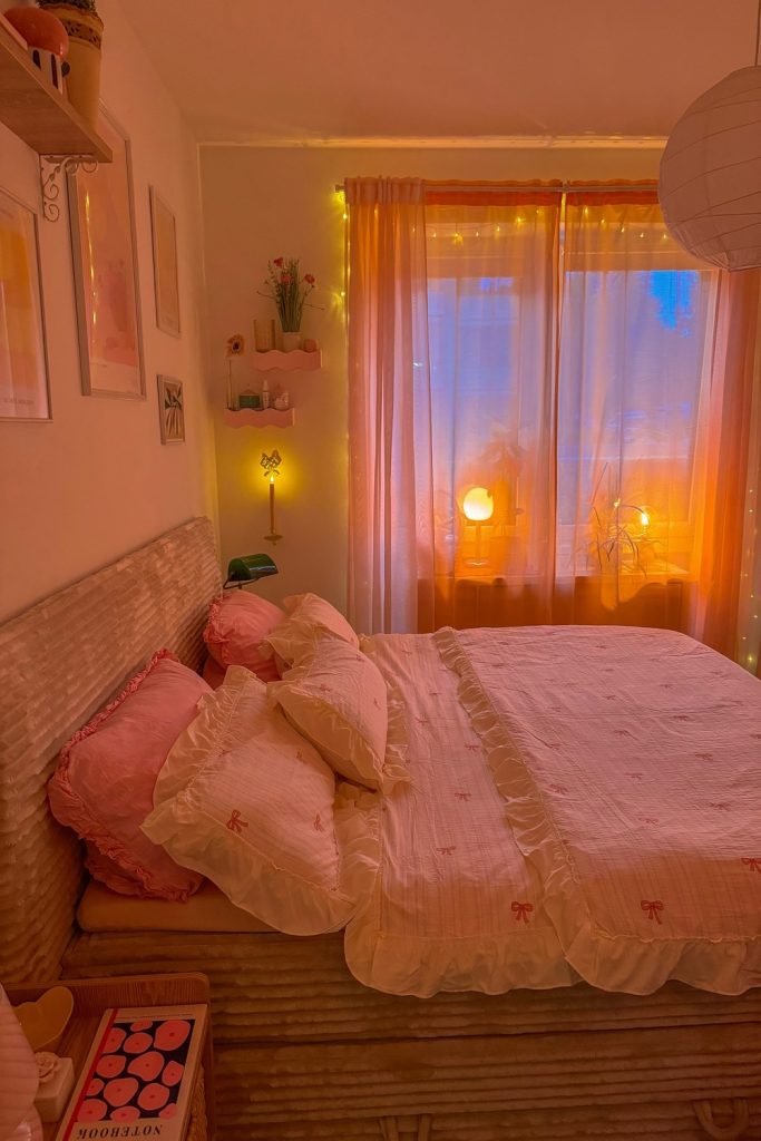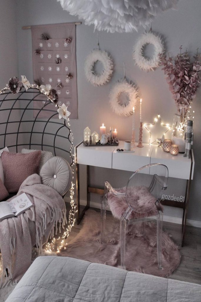 This bedroom feels like a warm hug with its soft pink bedding and fluffy white throw. A small Christmas wreath with pink accents hangs above the bed, while fairy lights add a magical glow. The natural wood nightstand keeps it grounded, embracing sustainable decor trends. It’s a simple yet festive look that’s easy to recreate. Add a pink wreath for a quick holiday refresh! Pin this for inspiration and share your favorite bedroom decor ideas in the comments.
