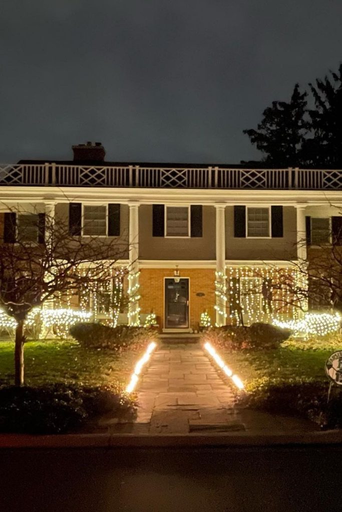 This front yard glows with holiday cheer! A cluster of vintage-inspired lanterns, filled with fairy lights and faux snow, lines the pathway, guiding guests to the door. A simple evergreen garland with pinecones adds a sustainable touch, while red ribbons pop against the greenery. It’s the perfect mix of festive and understated elegance. I’m obsessed with how the lanterns create a magical ambiance—perfect for evening gatherings. Want to recreate this? Check local markets for unique lanterns. Share your favorite holiday decor hack in the comments and save this for your Christmas inspo!