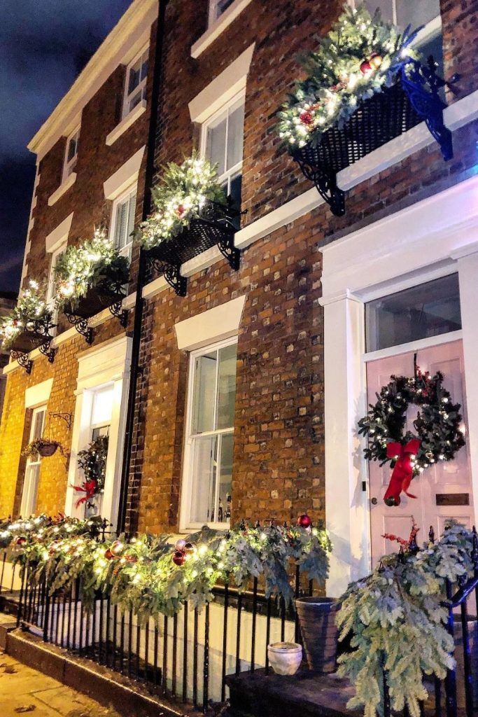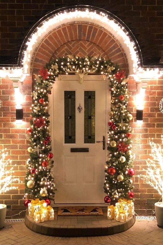 This porch is a greenery lover’s dream! Lush evergreen garlands drape over the railing, dotted with red ornaments and fairy lights. Potted pines in woven baskets flank the door, adding sustainable charm. The rich green palette feels festive yet timeless. I’m all about using fresh cuttings for that authentic holiday scent. Want this look? Source greenery from local farms! What’s your favorite way to use evergreens? Pin this for your Christmas decor ideas outdoor and share your greenery tips in the comments!