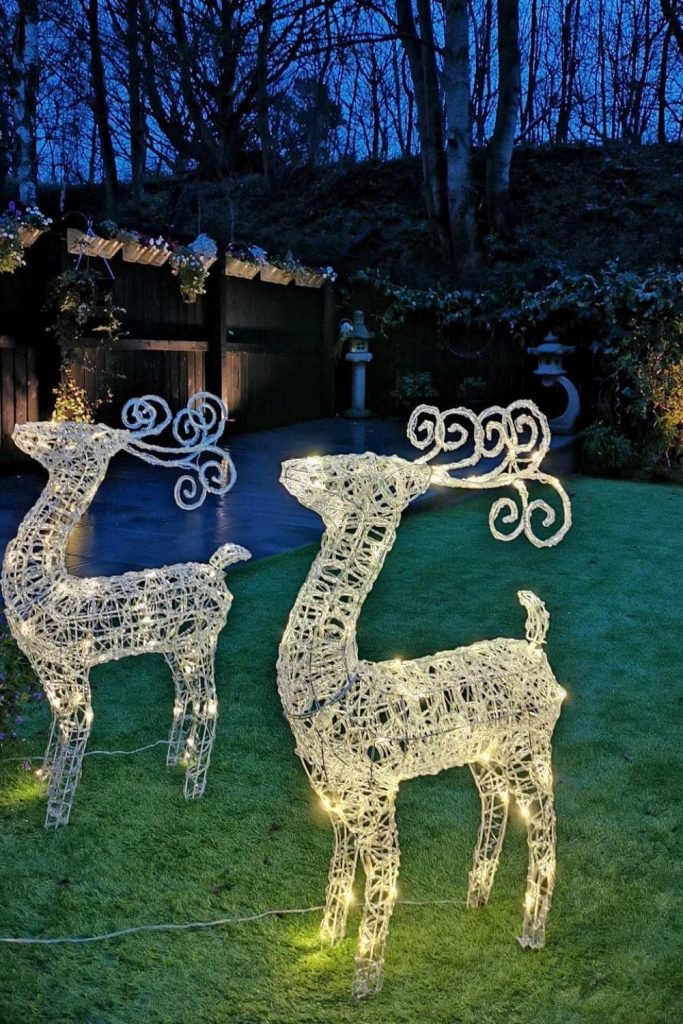 This pathway is pure holiday whimsy! Candy cane stakes line the walk, paired with glowing lanterns and small evergreens in burlap sacks. A playful “Winter Village” sign adds charm, making it feel like a festive stroll. The sustainable use of burlap and solar lights keeps it eco-friendly. I love how this setup invites guests with joy! Try DIY stakes for a personal touch. What’s your whimsical decor idea? Pin this for your outdoor Christmas decor inspiration and share your holiday setup tips in the comments!