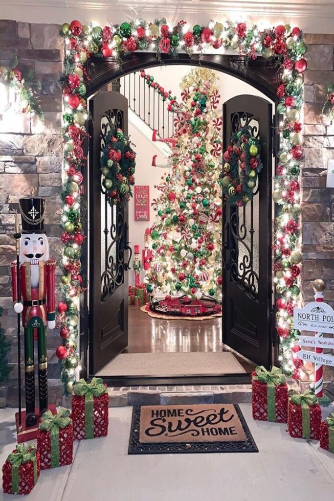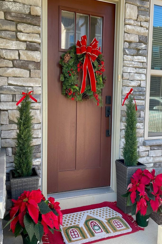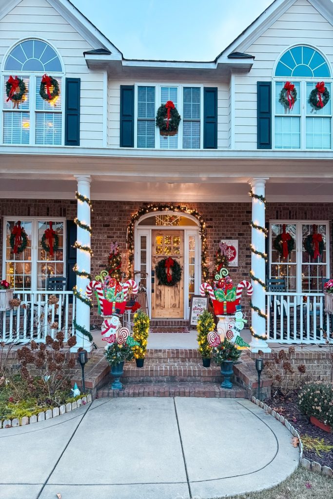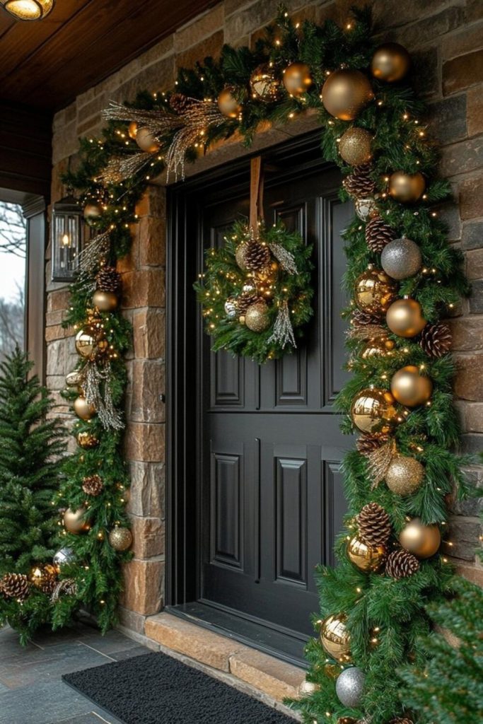 This porch is a green dream! Lush garlands and potted evergreens create a vibrant holiday scene, while twinkling lights add a magical touch. The bold use of greenery feels fresh and sustainable, aligning with 2025’s eco-friendly decor trends. I’d add a festive doormat to complete the look, as this setup is all about bold cheer. It’s perfect for making your porch a holiday focal point. Want a lush, green vibe? Try this and share your greenery tips on social media for more holiday inspo!