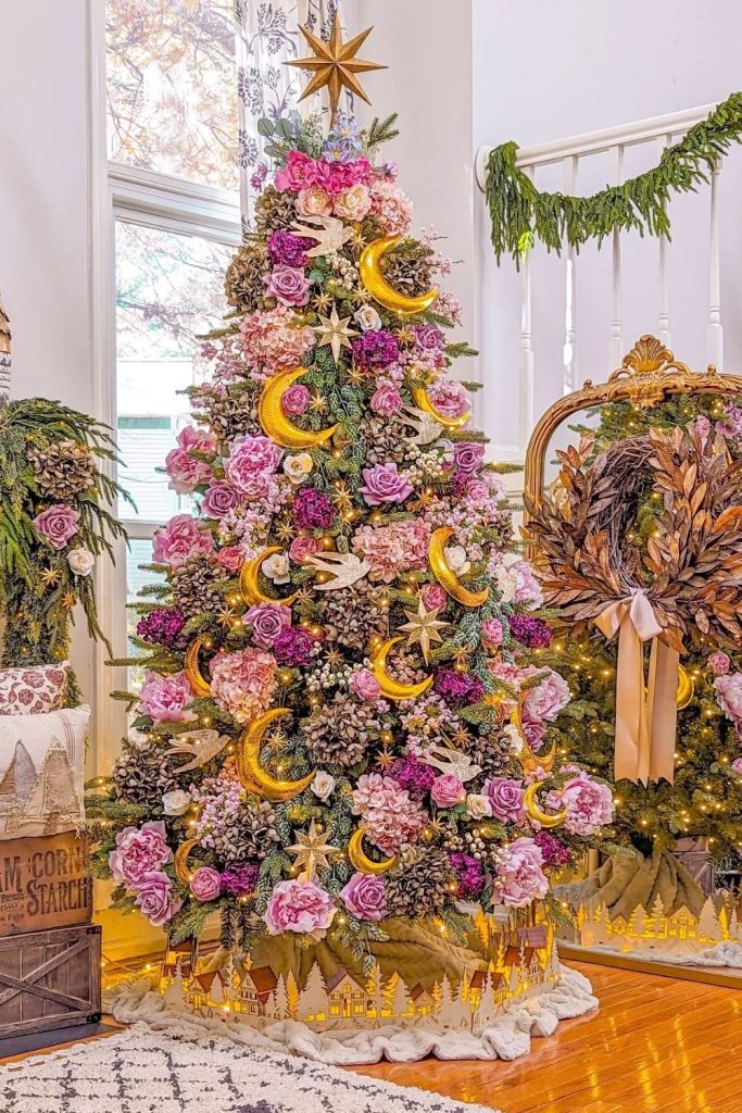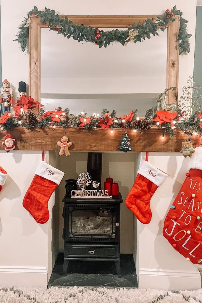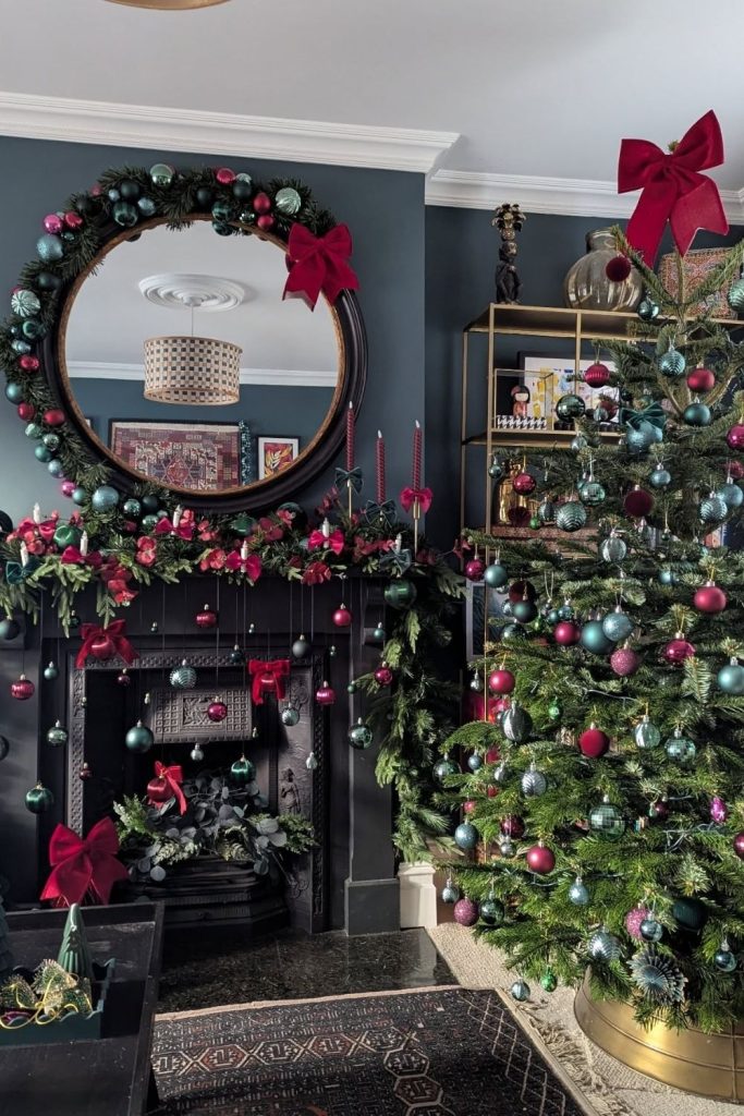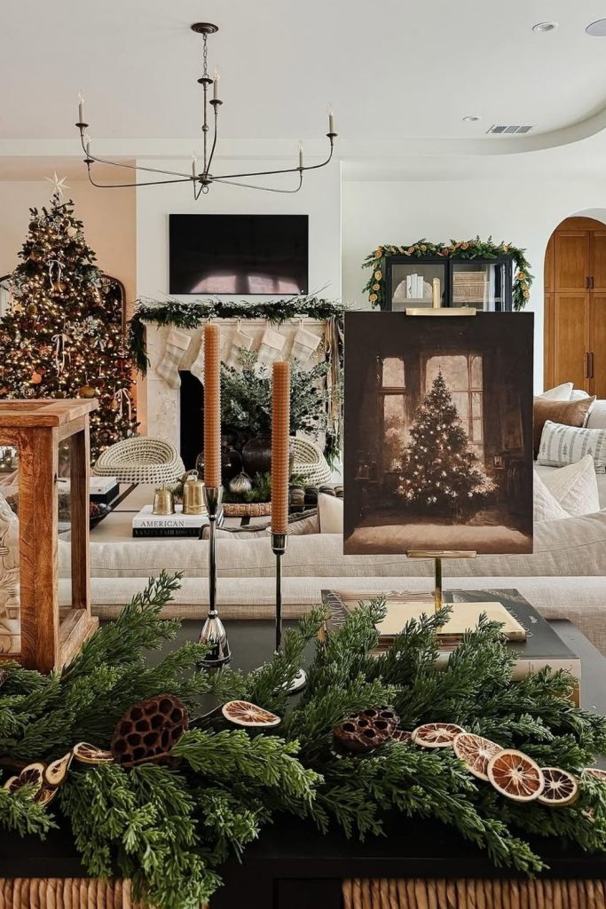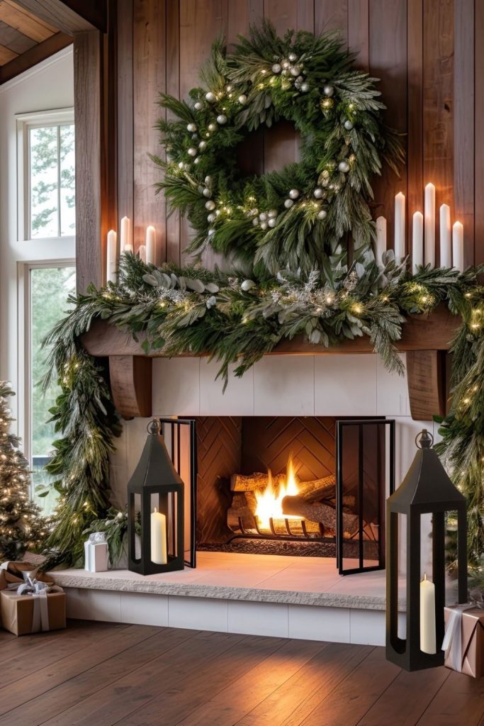 This mantel is a boho holiday dream! A garland of eucalyptus and pine cascades across, dotted with fairy lights for a magical glow. Woven baskets and ceramic vases in earthy tones add texture, while a few quirky ornaments bring personality. As someone who’s styled countless holiday spaces, I love how this setup mixes natural elements with eclectic charm. It’s sustainable and oh-so-inviting! Try layering greenery with personal touches like handmade ornaments for your own mantel. What’s your go-to piece for holiday flair? Pin this look for inspiration!