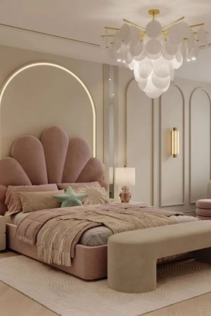 This bedroom is a romantic dream with its soft blush tones and vintage-inspired details. The ornate headboard and delicate lace throw add old-world charm, while a modern crystal lamp keeps it fresh. Sustainable wooden accents ground the space beautifully. I love how this blends timeless elegance with cozy vibes. For your own classy bedroom refresh, mix vintage finds with modern touches. It’s a perfect balance of nostalgia and style. Pin this for inspiration and drop your favorite vintage decor ideas in the comments to spark more creativity!