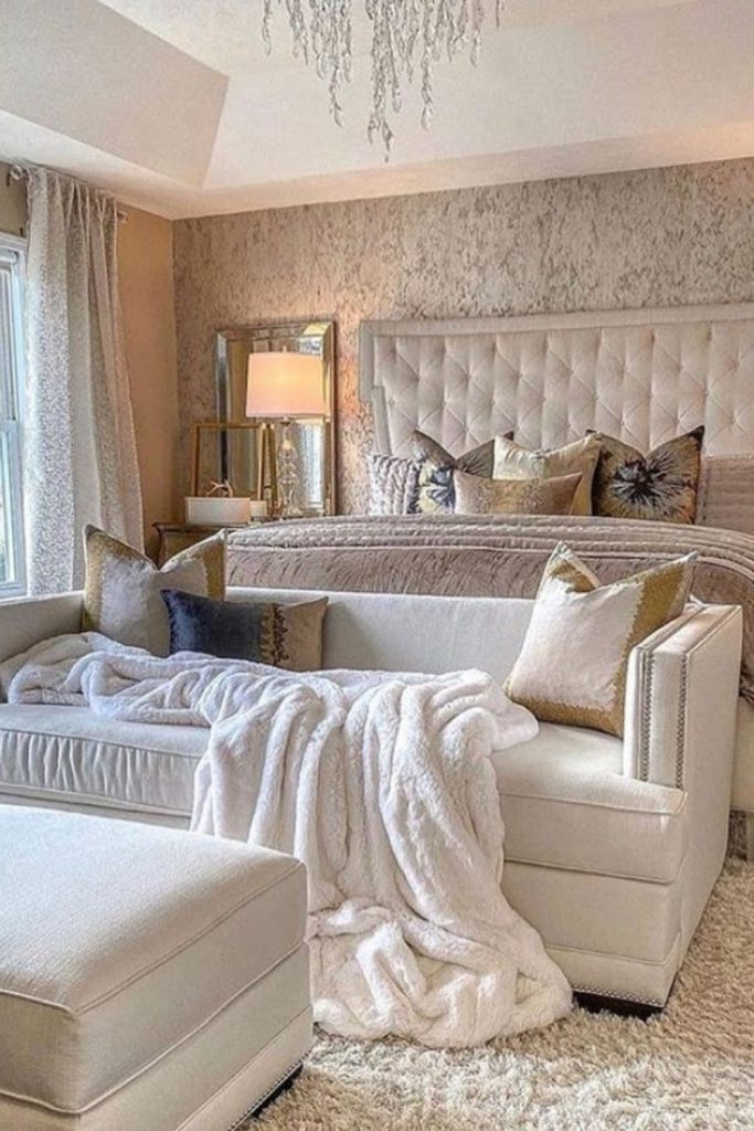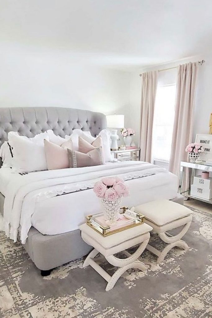This bedroom blends classic elegance with modern flair. The tufted headboard in soft gray feels timeless, while sleek brass lamps add a contemporary edge. Sustainable linen bedding in creamy white keeps it cozy yet refined. I love how the subtle textures create depth without clutter. For a classy bedroom refresh, mix traditional and modern elements for balance. This space is proof you can have both! Pin this for inspiration and share your favorite ways to blend old and new in the comments for more decor ideas.