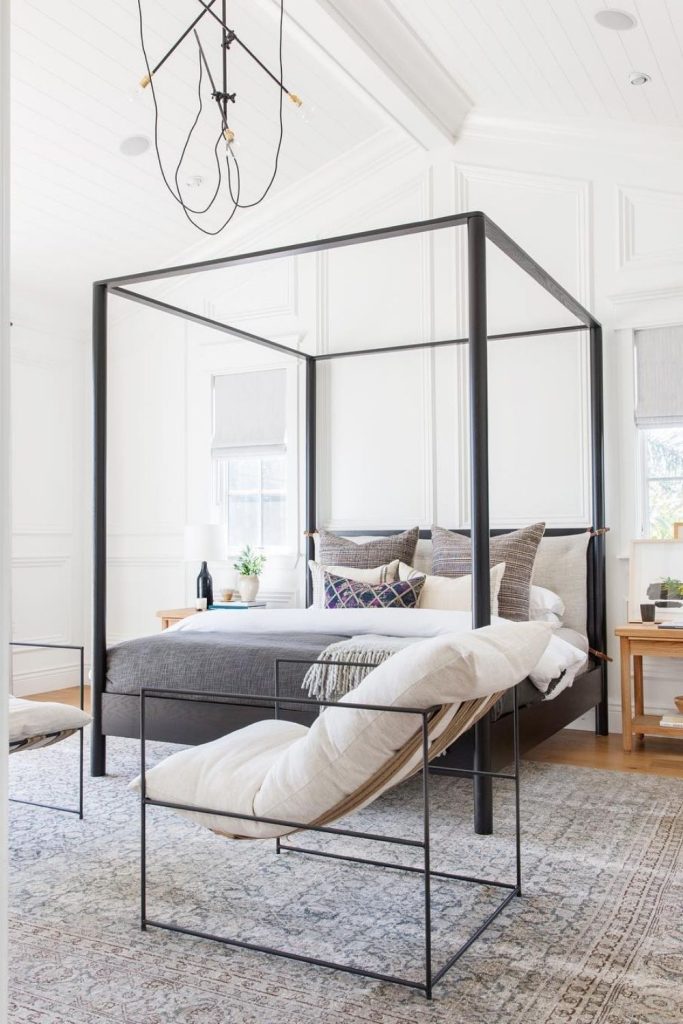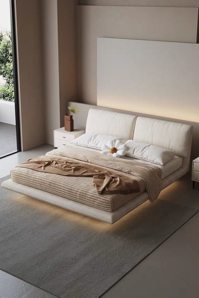 This bedroom is a sleek modern haven with its clean lines and monochromatic palette. The black platform bed and crisp white bedding create a striking contrast, while a sustainable jute rug adds warmth. I love how the minimalist art ties it all together! For a classy bedroom refresh, focus on bold contrasts and simple decor. It’s chic and calming. Pin this look and drop your modern decor tips in the comments to inspire your next stylish, serene bedroom makeover!