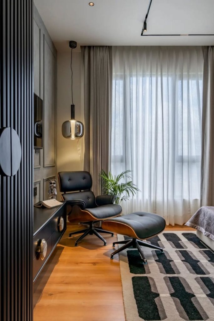 This bedroom nails urban chic with its sleek gray walls and minimalist black furniture. The plush velvet throw in mustard yellow adds a bold pop, while a sustainable bamboo rug keeps it grounded. I love how this space feels modern yet cozy! For a classy bedroom refresh, mix neutral tones with a single vibrant accent. It’s stylish without trying too hard. Pin this for your next makeover and share your urban decor ideas in the comments to spark more inspiration!