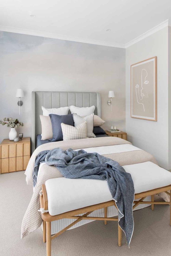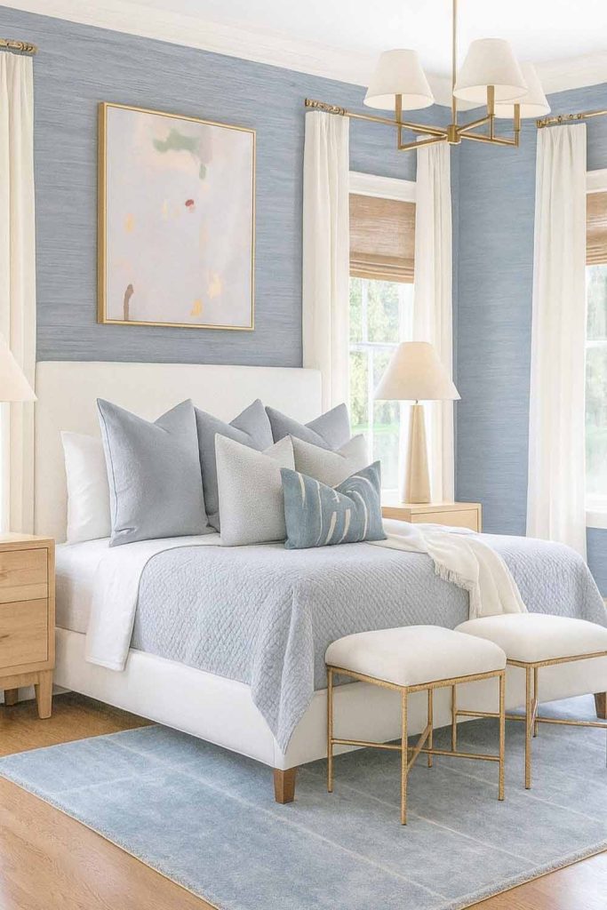 This bedroom nails modern coastal style with its clean lines and minimalist vibe. The sleek white bed frame paired with soft blue bedding feels fresh and serene, while the woven wall hanging adds subtle texture. I love how the space feels open yet cozy—perfect for a beach-inspired retreat. To recreate this, stick to simple furniture and a neutral palette with ocean-inspired accents. It’s effortlessly chic! What’s your go-to modern decor trick? Try this look and share your coastal bedroom ideas on Pinterest to inspire others with your serene style!