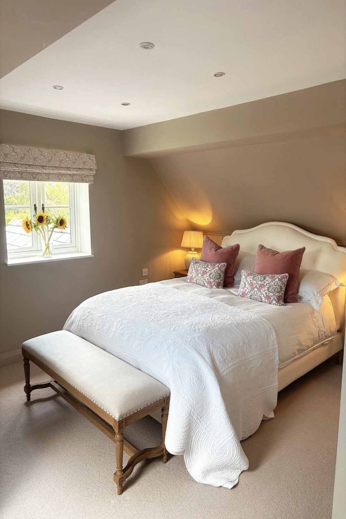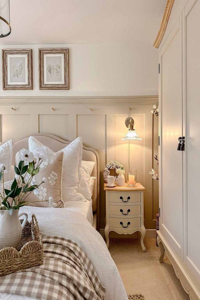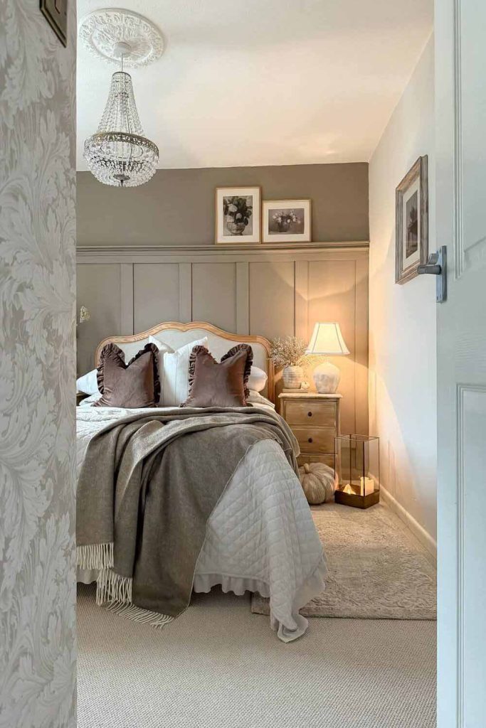 This bedroom feels like a quiet beachside retreat. The earthy tones—sandy beiges and soft whites—create a calming vibe, while the woven headboard adds natural texture. I love the subtle green accents that nod to coastal dunes. It’s all about simplicity and serenity here. To get this look, use natural materials like rattan or linen and stick to a muted palette. It’s perfect for a peaceful escape. What’s your favorite earthy decor piece? Pin this for inspiration and share your coastal bedroom tips in the comments to inspire others!