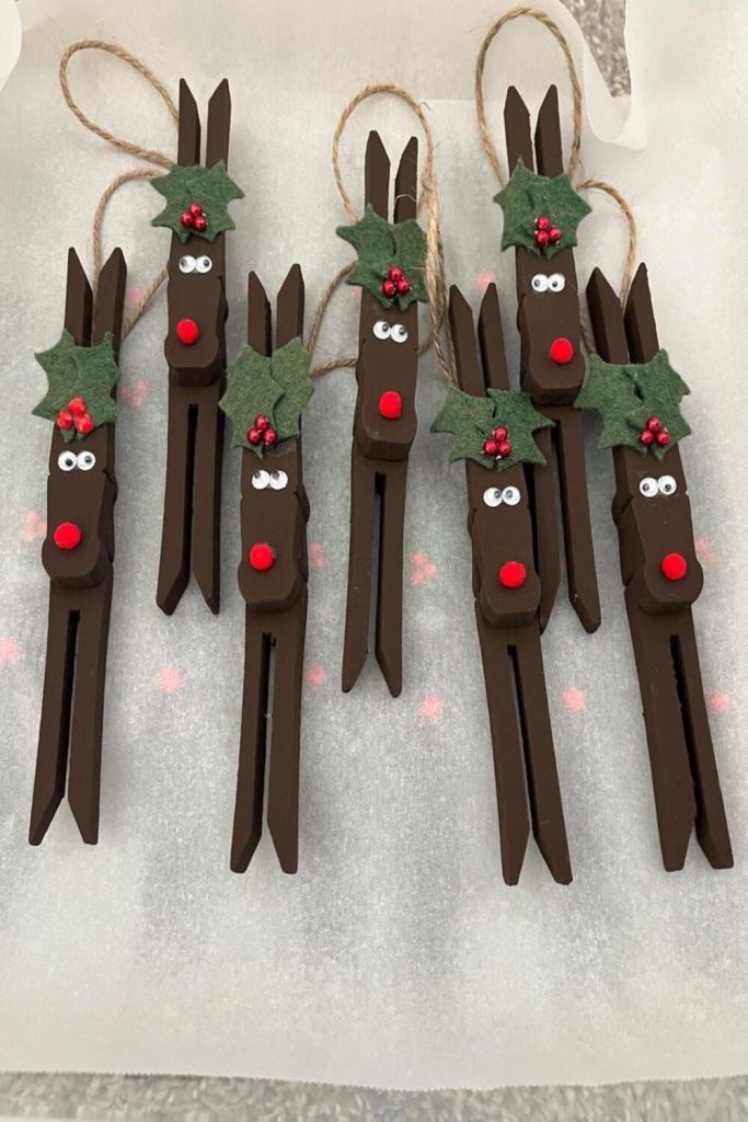 Make clothespin reindeer with kids! Paint the clothespins brown. Glue on googly eyes and a red pom-pom nose. Clip them on cards or garland for fun. These upcycled reindeer are cheap and playful. Kids can make a whole herd fast! Try this at your Christmas party and share your reindeer online. How do you use everyday things for crafts?