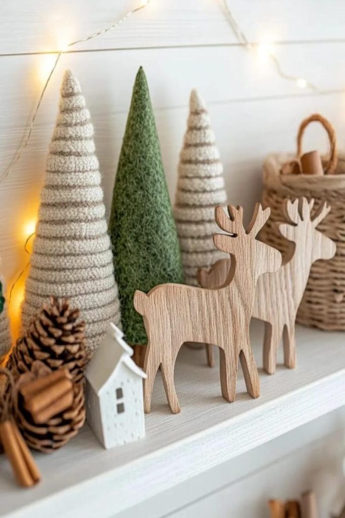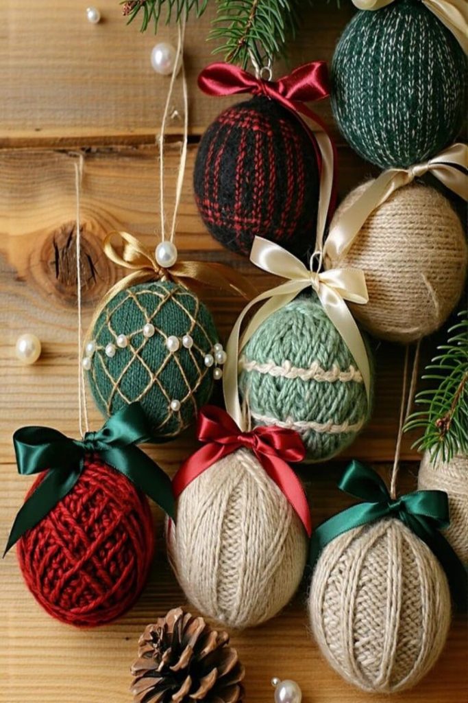 These knitted ornament covers add a warm, handmade touch to your tree. Using soft yarn in winter whites and greens, they’re perfect for 2025’s cozy decor trends. As someone who’s knitted for years, I love how these covers transform plain baubles into something special. They’re easy to slip on and reusable, making them sustainable too. Try chunky yarn for extra texture. They’re great for gifting or styling a minimalist tree. Pin this idea and let me know your favorite yarn colors for holiday crafts in the comments!