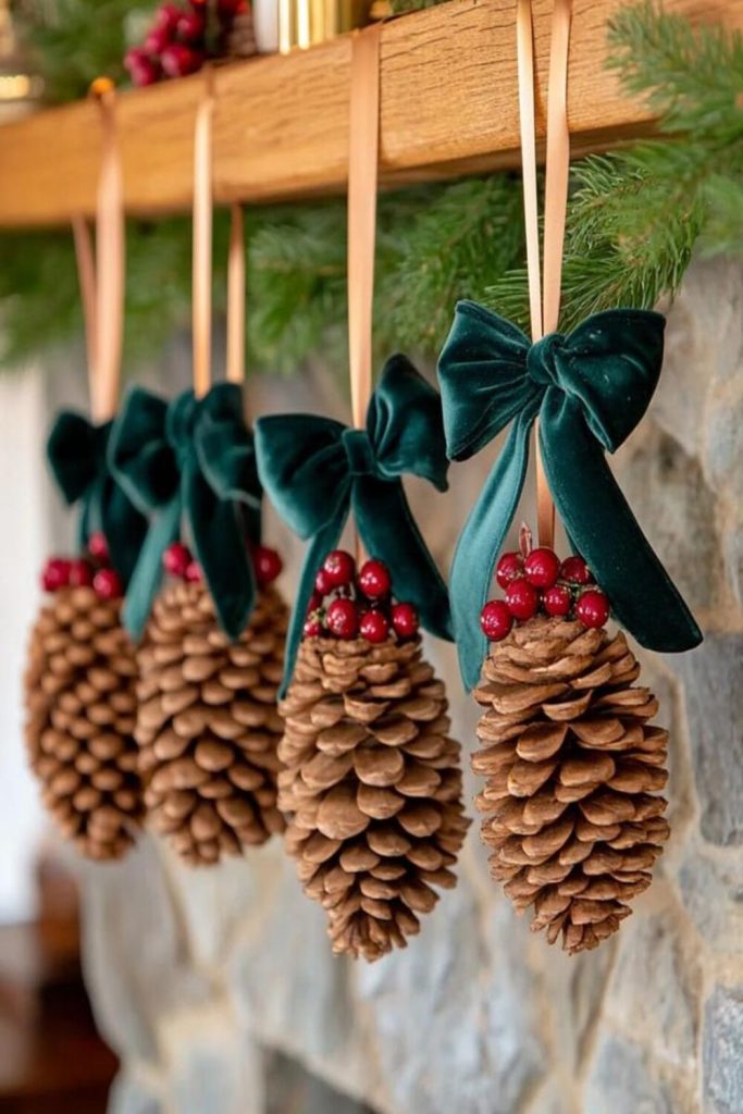 These charming pinecone ornaments are a nod to rustic Christmas vibes. Gathered from a winter walk, the pinecones are lightly dusted with faux snow and tied with twine for a natural, cozy feel. As a seasoned crafter, I love how they bring the outdoors in, perfect for a minimalist tree. Hang them in clusters or scatter them across a garland for that woodland charm. Use eco-friendly paint for a sustainable twist! Try this easy DIY to add warmth to your holiday setup. Share your favorite natural decor ideas in the comments!