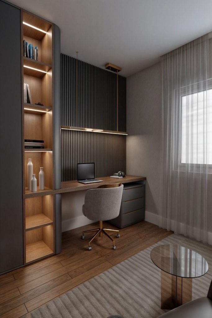 This zen-inspired desk setup is pure tranquility! A low-profile bamboo desk is paired with a cushioned stool, styled with a single bonsai and stone accents. The neutral palette and clean lines create a serene workspace. I’ve designed calming offices, and this one nails the minimalist zen vibe. Perfect for focus and clarity! Want a peaceful home office? Pin this for ideas. Share your zen decor tips in the comments to inspire others.