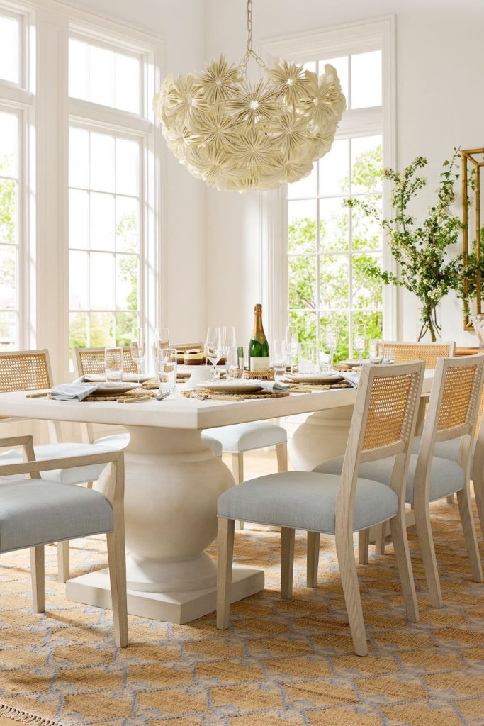 This table is calm and simple. A ceramic vase holds dried branches. A neutral linen runner keeps it clean. The look is inviting and airy. Perfect for everyday meals or casual dinners. Try dried botanicals for a sustainable touch. Pin this for your minimalist board and share your tips!