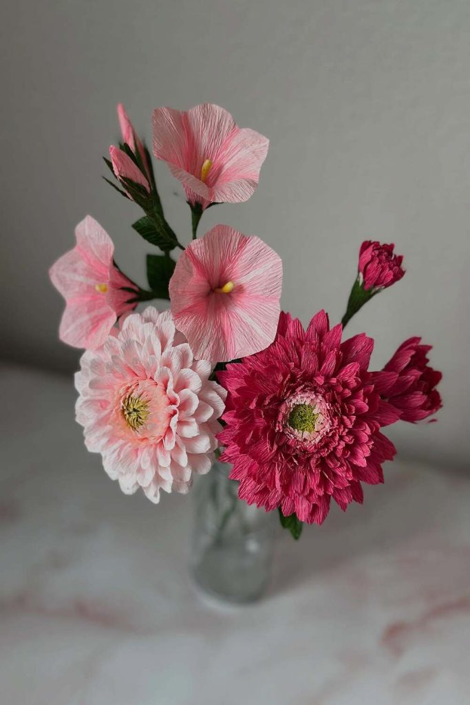 This crepe paper flower bouquet is pure magic! The soft, flowing petals in pastel hues capture spring’s essence, making it a dreamy centerpiece. As a craft lover, I’m obsessed with crepe paper’s versatility—stretch it gently for lifelike petals and wire stems for structure. These blooms last forever, unlike fresh flowers, and add cozy handmade charm. Perfect for gifting or decorating, this project suits all skill levels. Try a seasonal palette like blush or sage for extra wow. Pin this idea and drop a comment with your favorite flower craft—I’d love to hear what inspires you!
