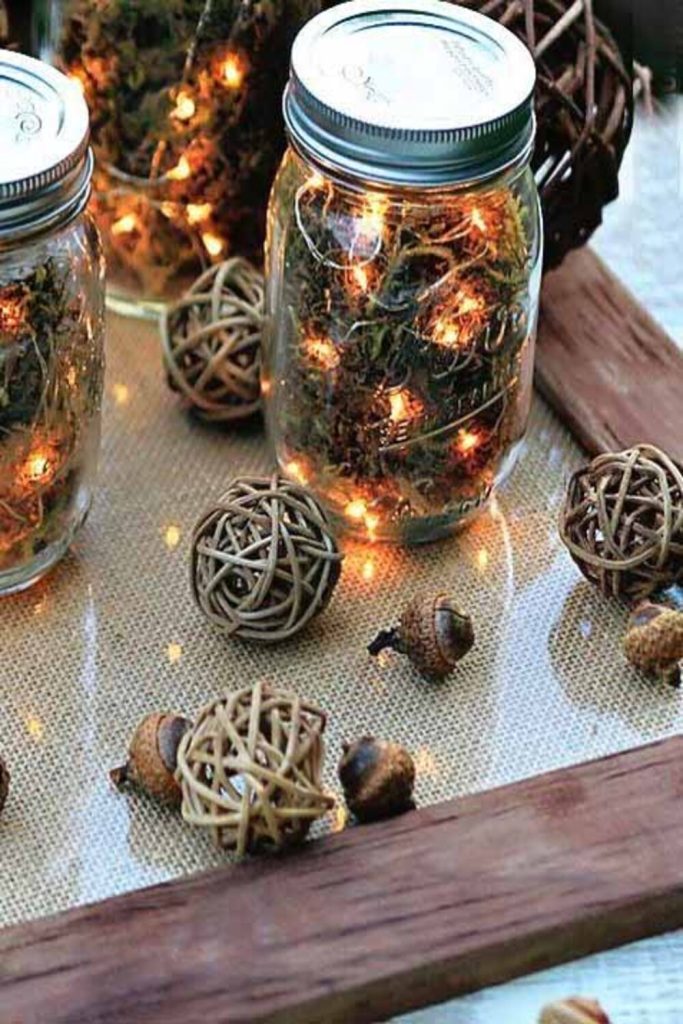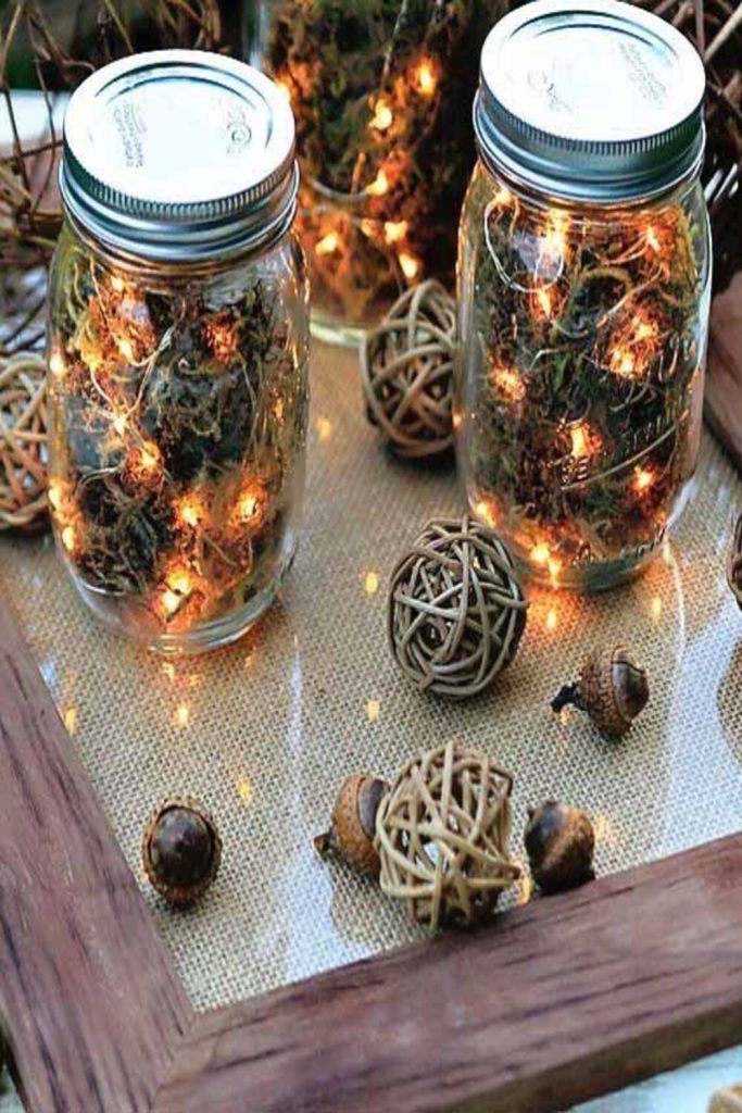 15. Enchanted Moss and Acorn Fairy Light Mason Jars