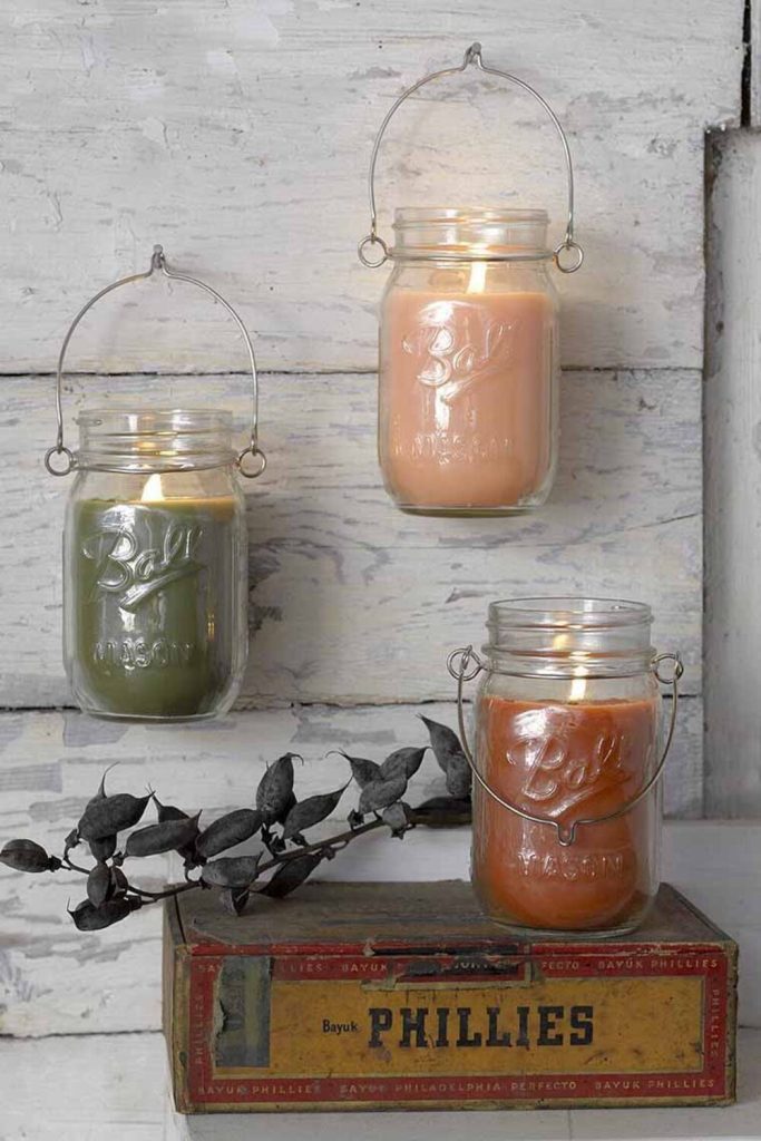 19. Vintage Hanging Candle Jars with Dried Pod Accents