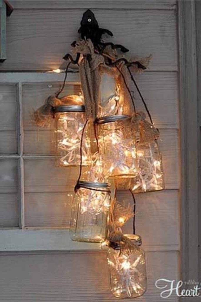 6. Solar-Powered Hanging Starlit Mason Jar Lanterns