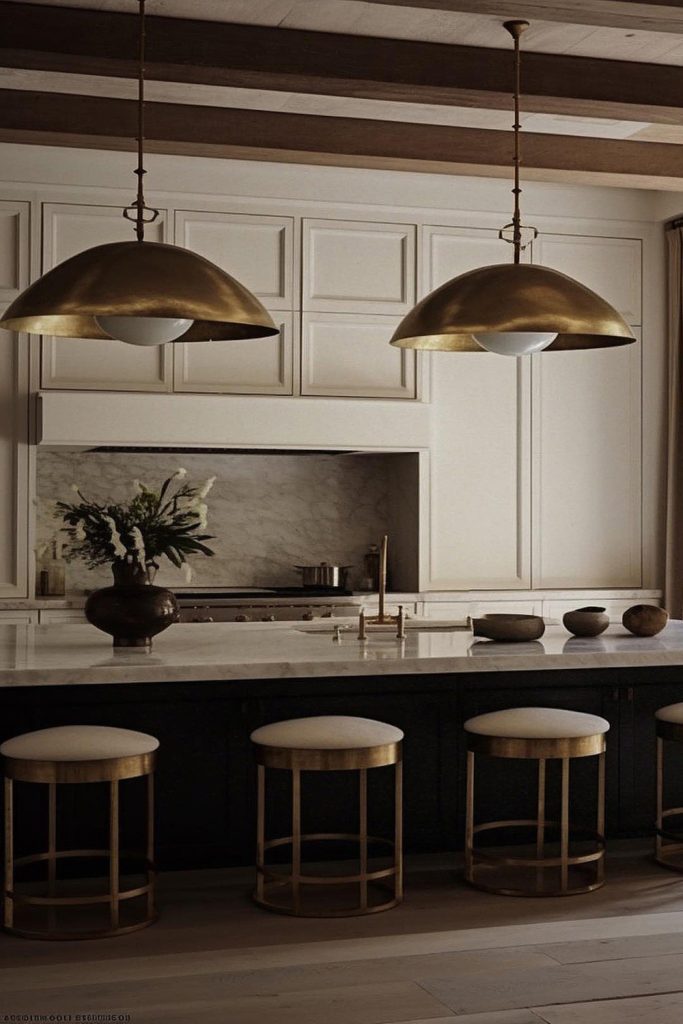 This modern French kitchen is simple and classy. The navy cabinets and marble counters look smooth and rich. The wooden parts keep it warm and cozy. The brass lights match 2025’s soft, simple trend. The cream walls make the space bright and calm. Want this cool vibe? Use bold colors and clean lines. Tell me your favorite French design ideas in the comments and share this post for more modern looks!